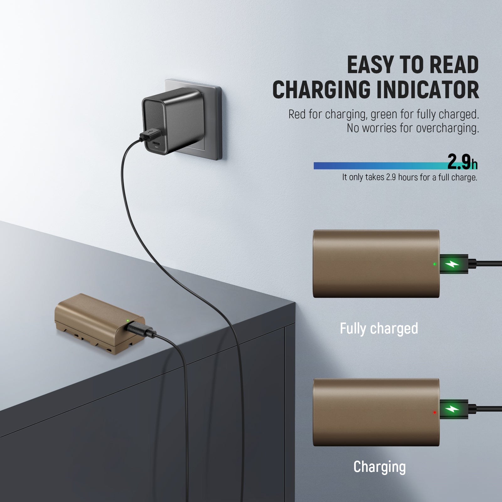- Faster Full Charging Speed- This battery can be fully charged in 2.9 hours with a separately purchased 5V 2A USB wall charger, much faster than 9 hours when using the original battery charger. Note: PD fast charging is not supported