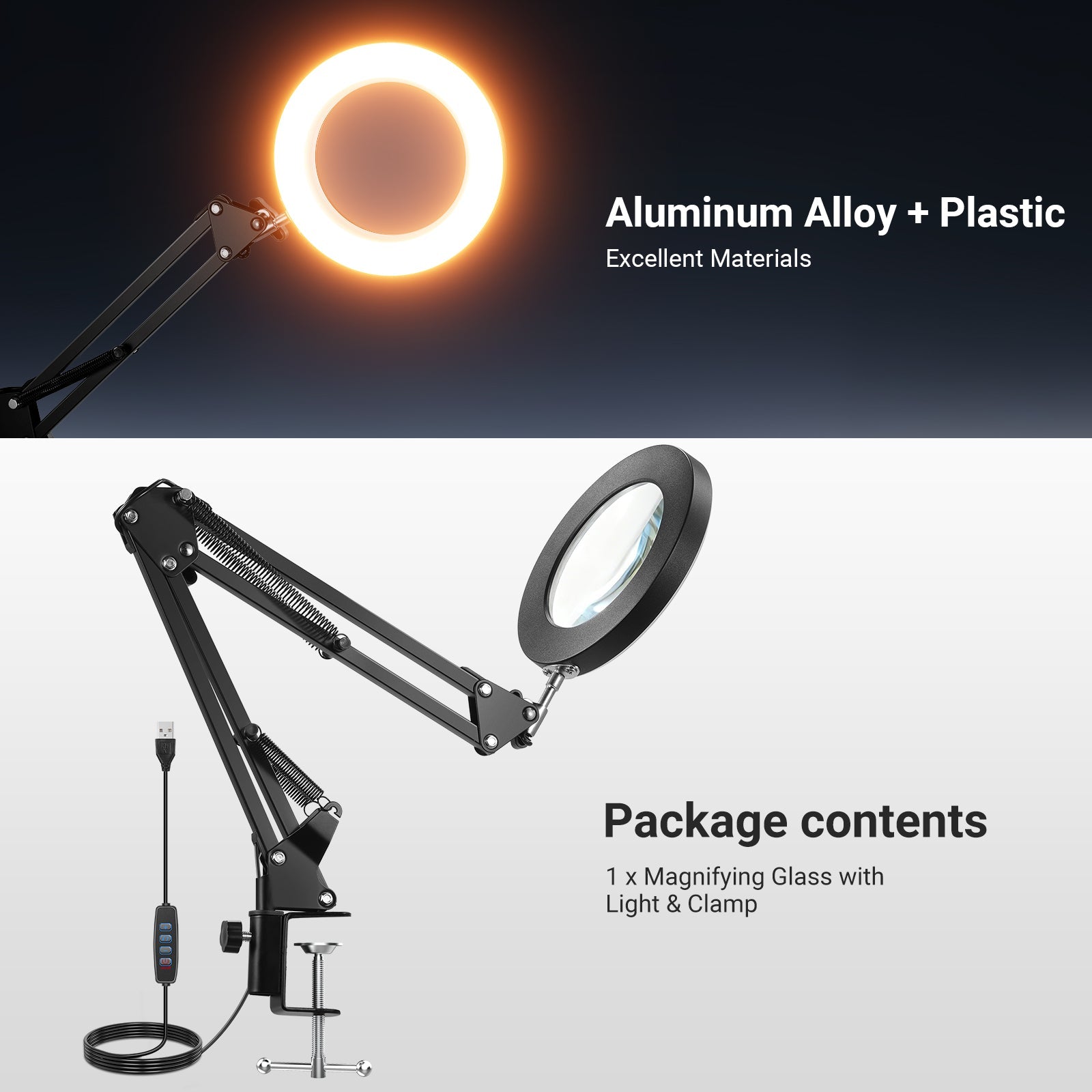 • 1 x Magnifying Glass with Light & Clamp