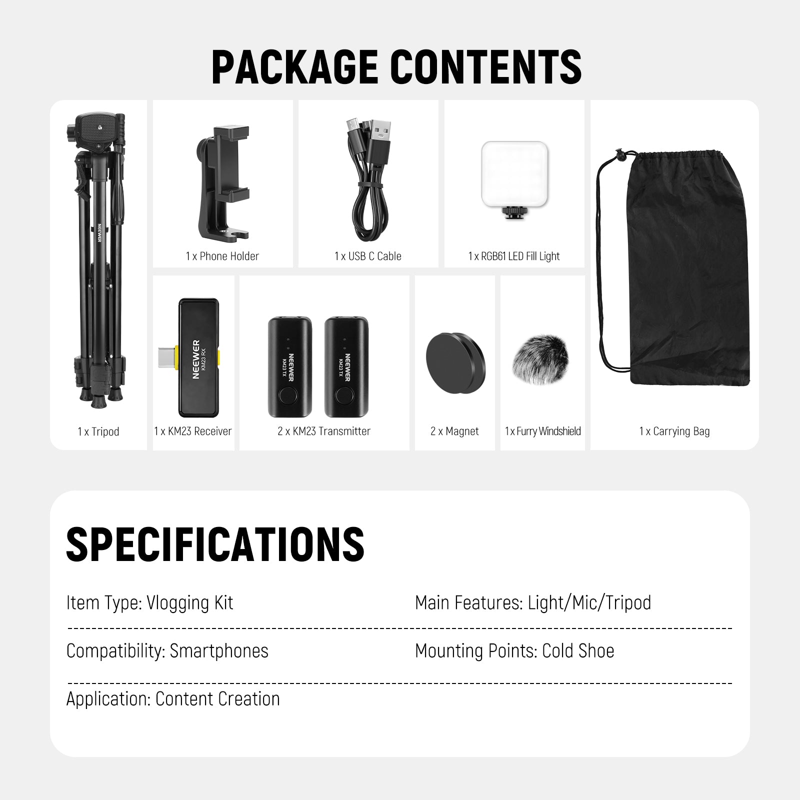 NEEWER BASICS PA056 55.9" Vlogging Kit