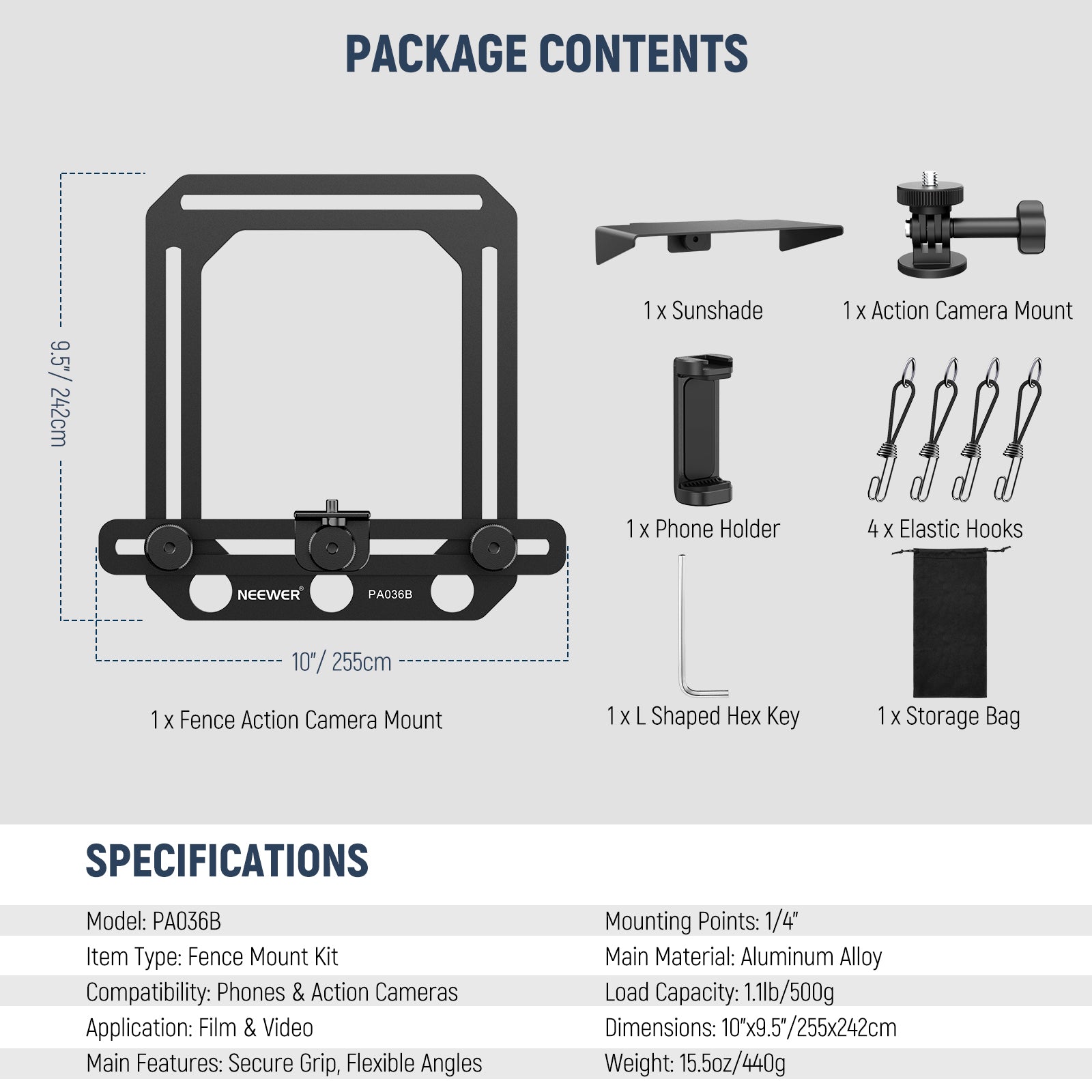 NEEWER PA036B Fence Phone & Camera Mount