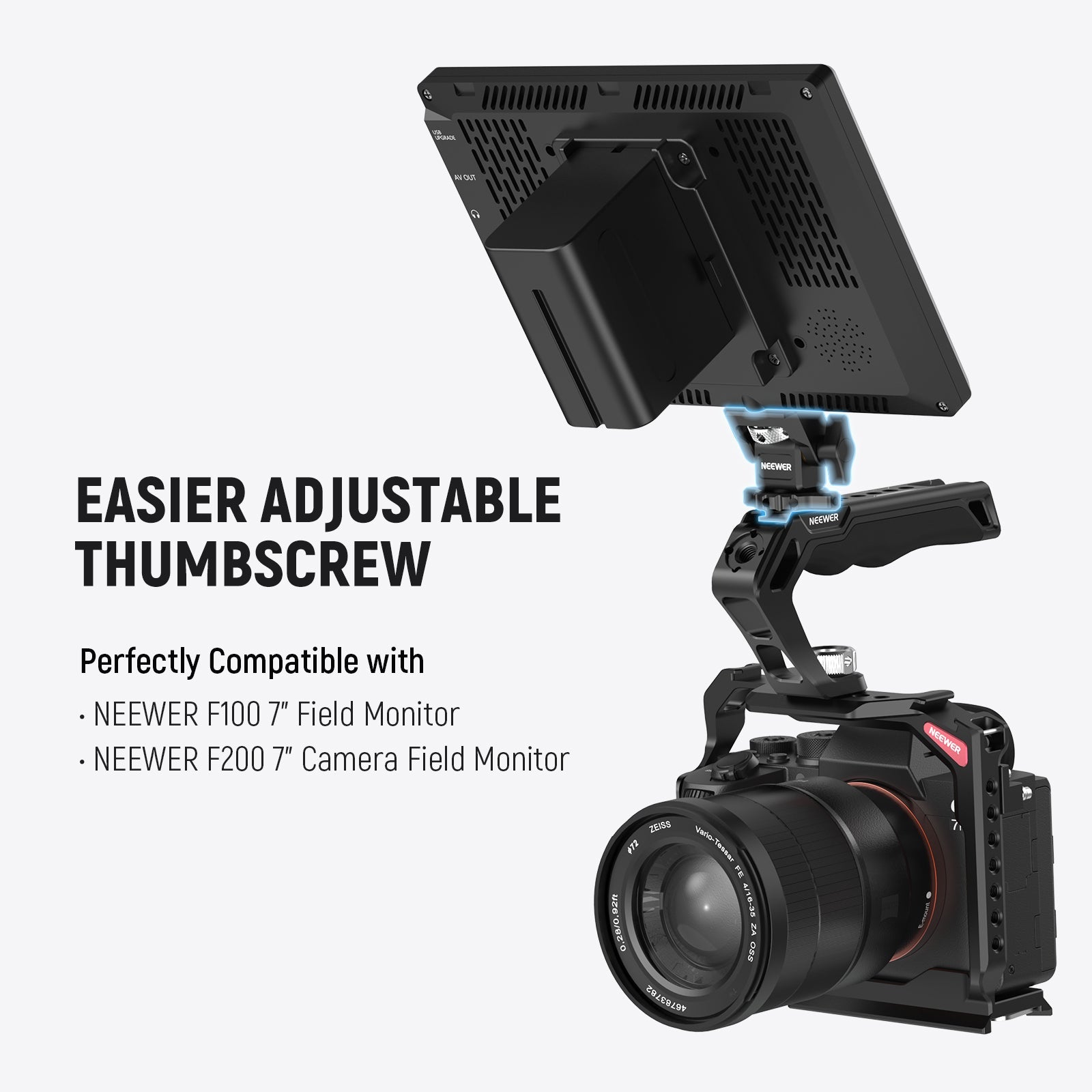 • Discover More From NEEWER- Other recommended items include: CA016 Universal Camera Cage Stabilizer, CA007 Camera Top Handle, CA008 Top Handle Camera Grip with Quick Release NATO Clamp, F100/F400 Pro/F500 Camera Field Monitor, and UA003/UA007/UA022 Mini NATO Rail