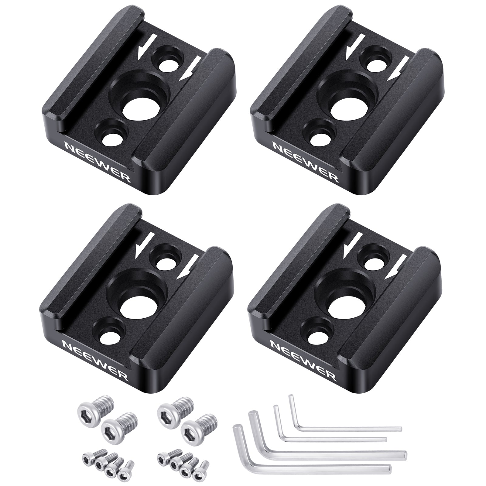 - Camera Cold Shoe Mounts feature one 1/4"-20 screw hole, two M2.5 screw holes, and bottom non-slip rubber padding for secure mounting on your compatible device.