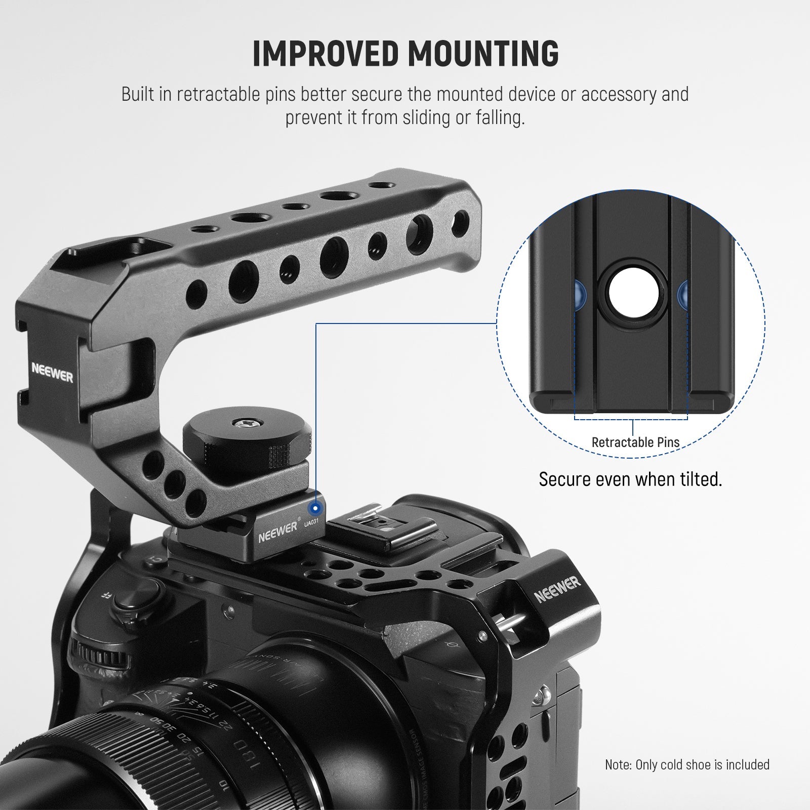 - Improved Non Slip Design- Equipped with a safety pin and two cross-patterned silicone pads at the bottom to add friction between the cold shoe mount and your camera, and prevent unwanted wobbling while shooting