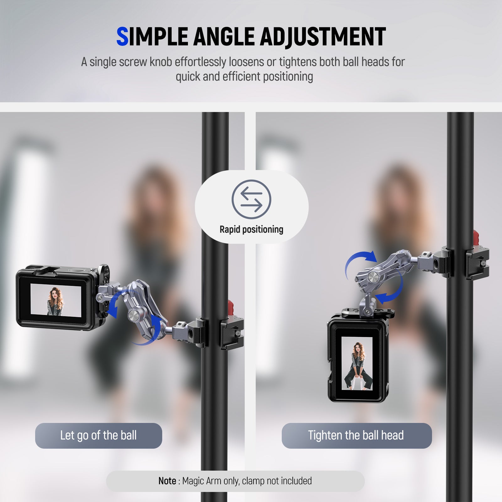 - Ultra Lightweight Design- Optimized with a reduced weight (2.7oz/76g), this magic arm is more ideal for outdoor photography, filmmaking, vlogging, and live streaming. At 4.6"x1.7"x0.9"/118x42x22mm, it is portable and easy to fit inside your bag