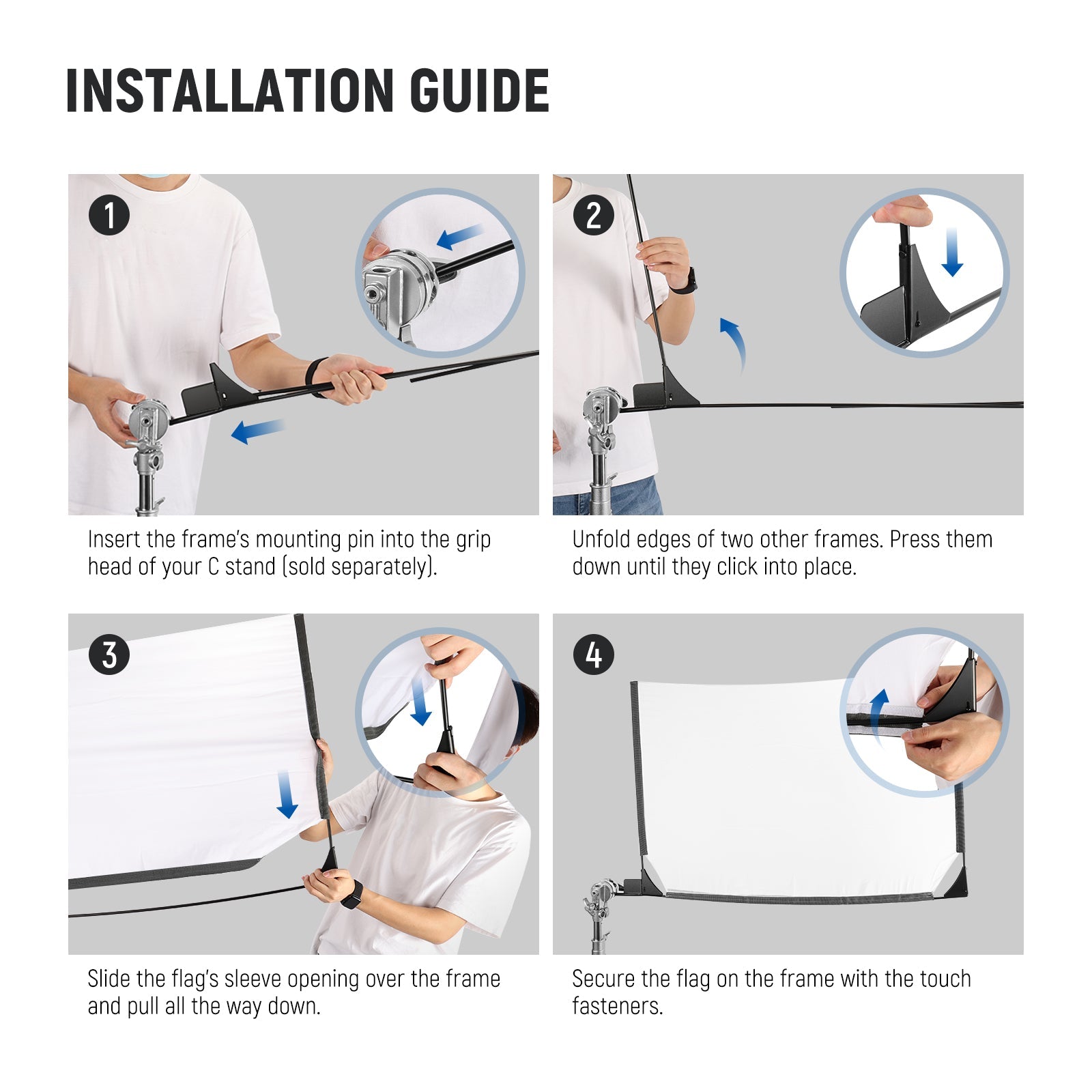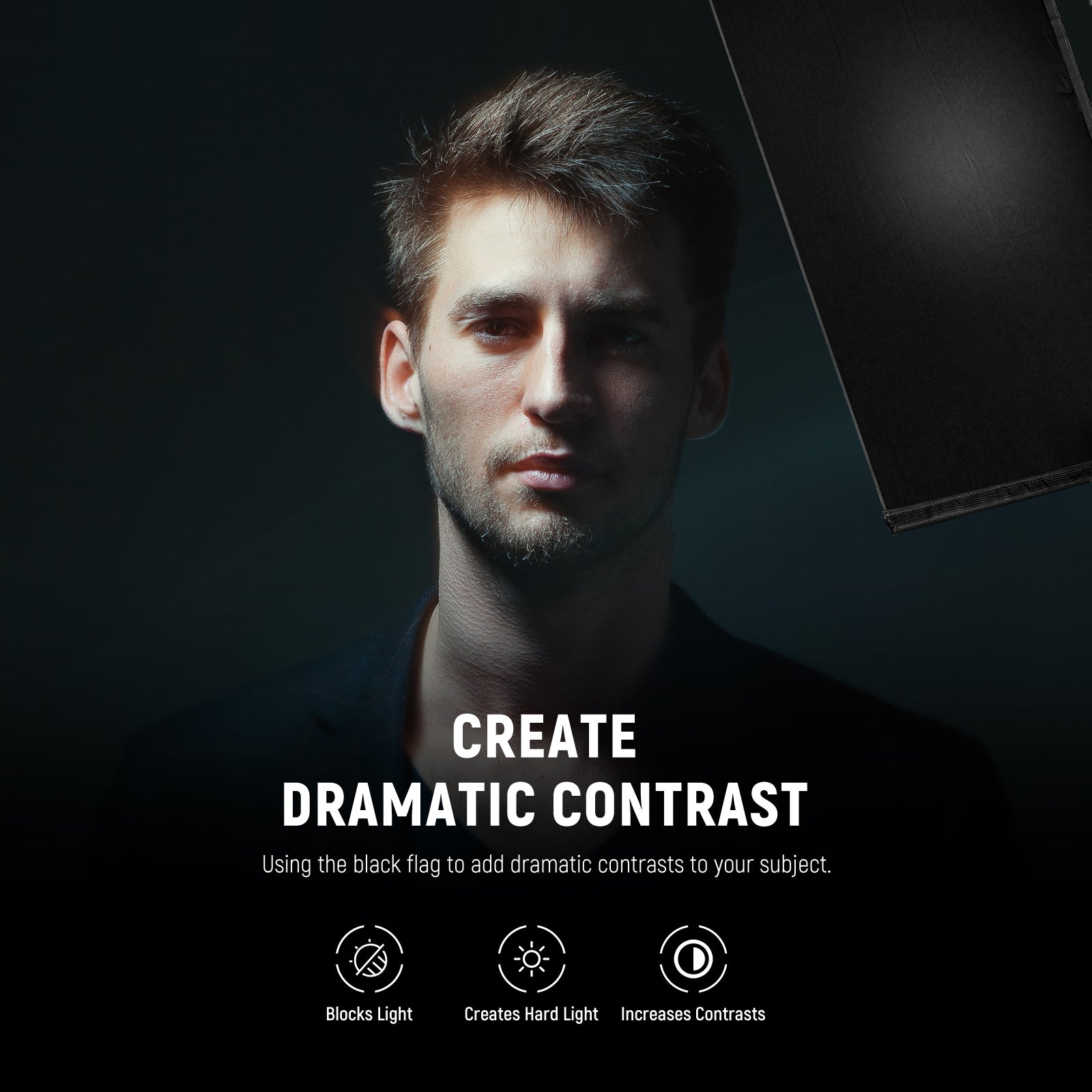- Comprehensive Light Shapers- Foldable flags serve to reduce, diffuse, and block light sources. Used by photographers for dramatic light contrast and precise control over light output and achieve sublime, creative light effects with ease. One side of the flag is frameless, which creates an even and natural light transition without shadows.