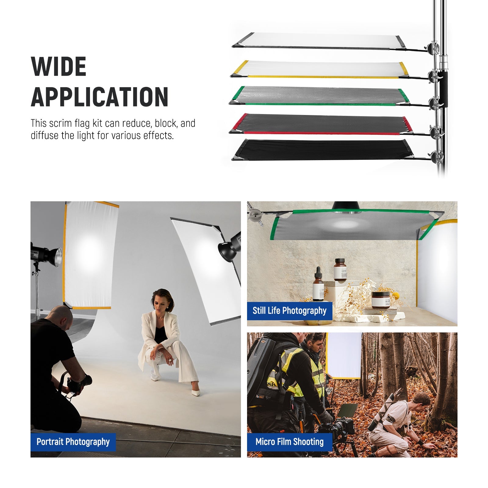 NEEWER 5 in 1 Photography Foldable Scrim Flag Kit