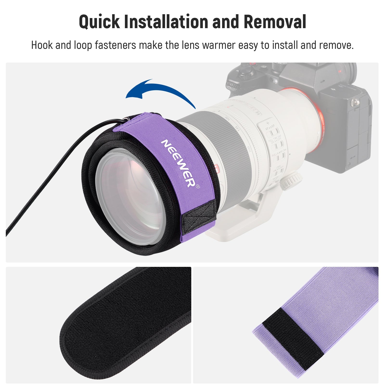 - Effective 12"/300mm Heater Length- Eliminate dew, fog, and condensation with our specially crafted lens warmer during cold weather photography. For optimal performance and even heating, it is recommended to use on lenses or telescopes with a circumference of up to 12"/300mm and a diameter of 96mm