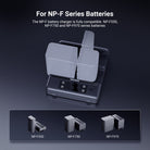 - Comprehensive Circuit Protection- Each slot of the NP-F battery charger features a built in advanced circuit that protects against overcharging, short circuits, overheating, overcurrent, overvoltage, and other potential hazards, ensuring a safe and reliable charging process
