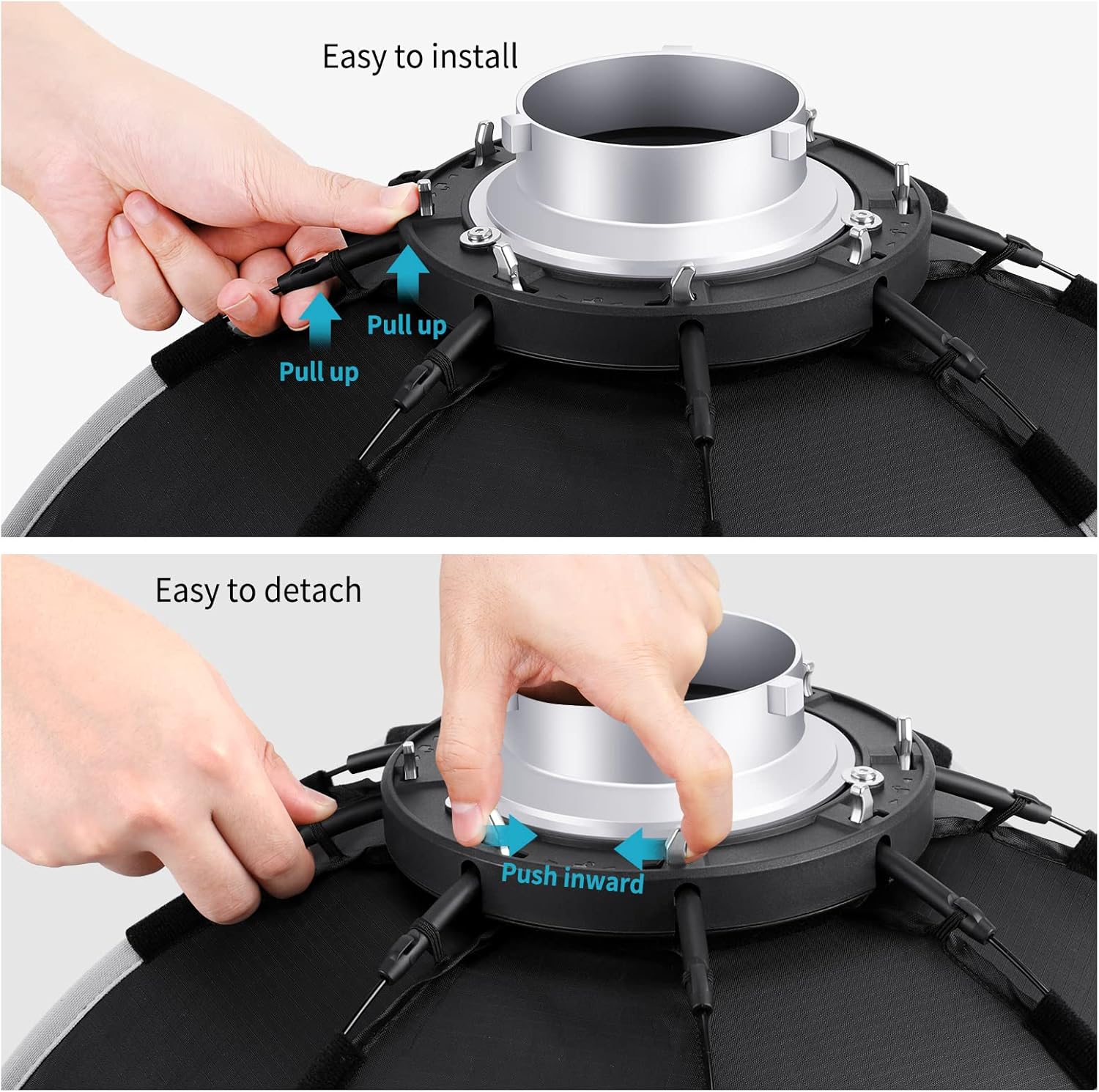 - 90CM Mount type: Bowens Mount; Allow flexible use with all Bowens Mount Studio Flash, such as Neewer CB60 CB100 CB150, Aputure 300D II 120D, Godox SL-60W SL150W II FV150 VL150, and Other Bowens Mount Light.