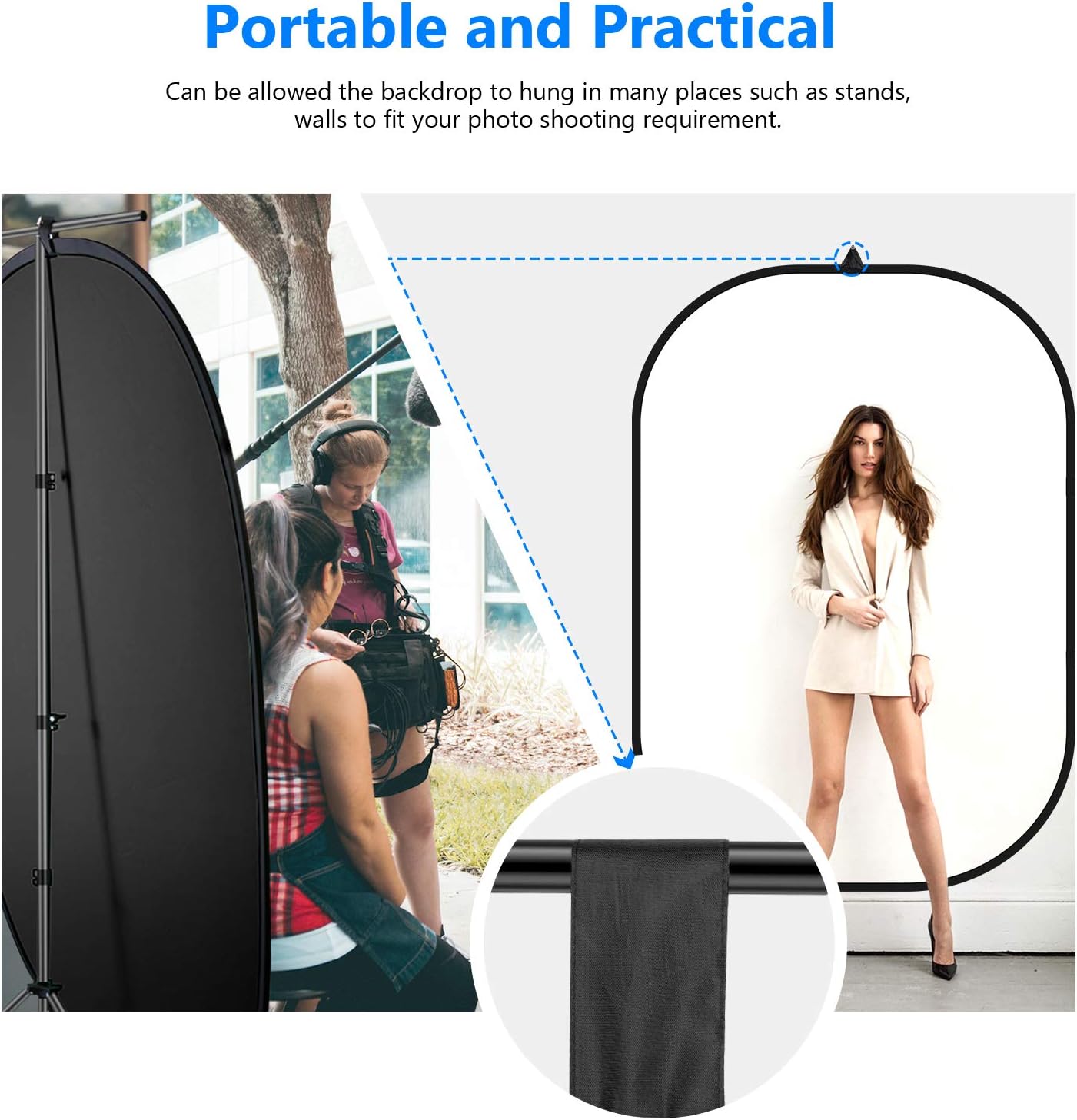 • This 5"x 7"/150x200cm Black+White 2-in-1 Collapsible Background Panel is a perfect choice for outdoor and studio shooting.