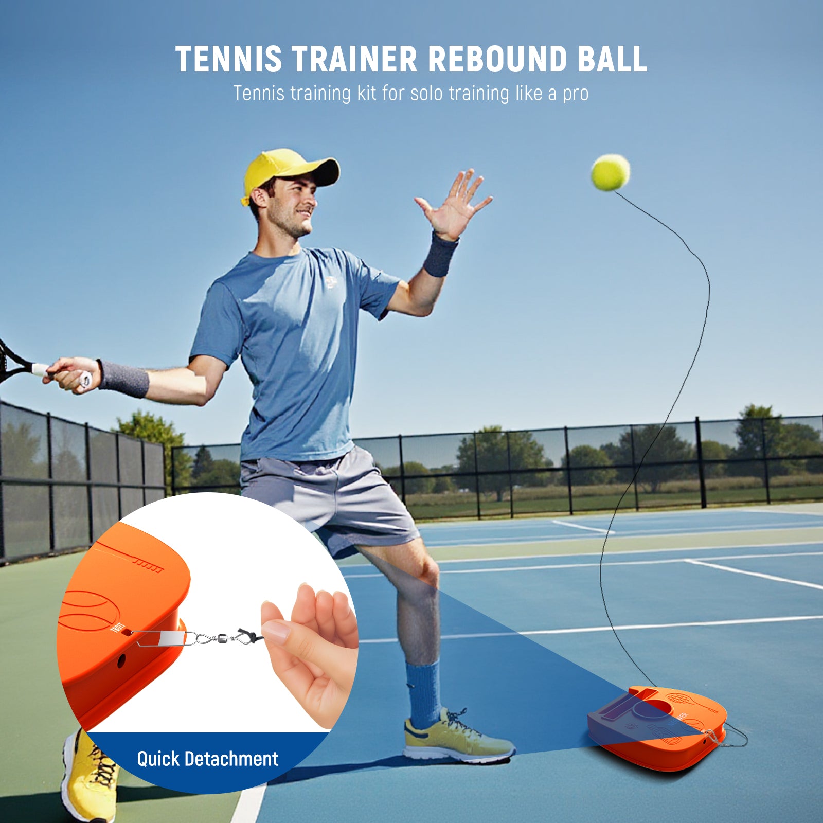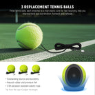 • Includes 3 Tennis Balls- Three tennis balls are included. Each features am easily detachable hook and a 3.5m highly elastic and robust nylon string. The tennis balls made of thick natural rubber and premium felt offer excellent rebound and durability for extended training sessions. Tip: Knot the string to adjust the length