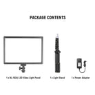 • Package Contents- 1 x LED Video Light Panel, 1 x Adjustable Cold Shoe Adapter, 1 x US Charger, 1 x User Manual