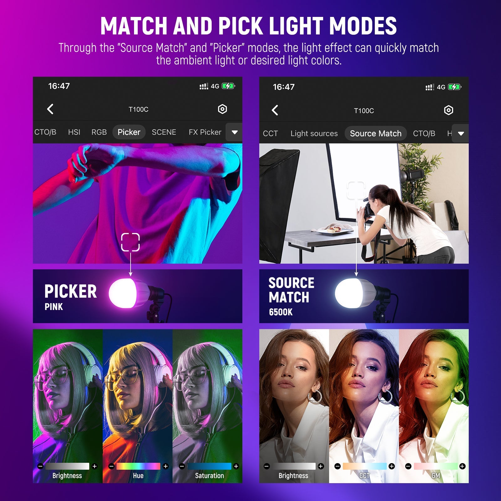 - Intelligent App Control- Use our NEEWER App to control the bulb within 49ft (15m) via Bluetooth connection. The app offers 9 modes (CCT, HSI, RGB, FX, FX MUSIC, CTO/B, Light Match, Source Match, and Picker), allows independent control or collective control over 8 lights, temporarily saves 2 presets, bookmarks favorite light settings, and supports OTA firmware update