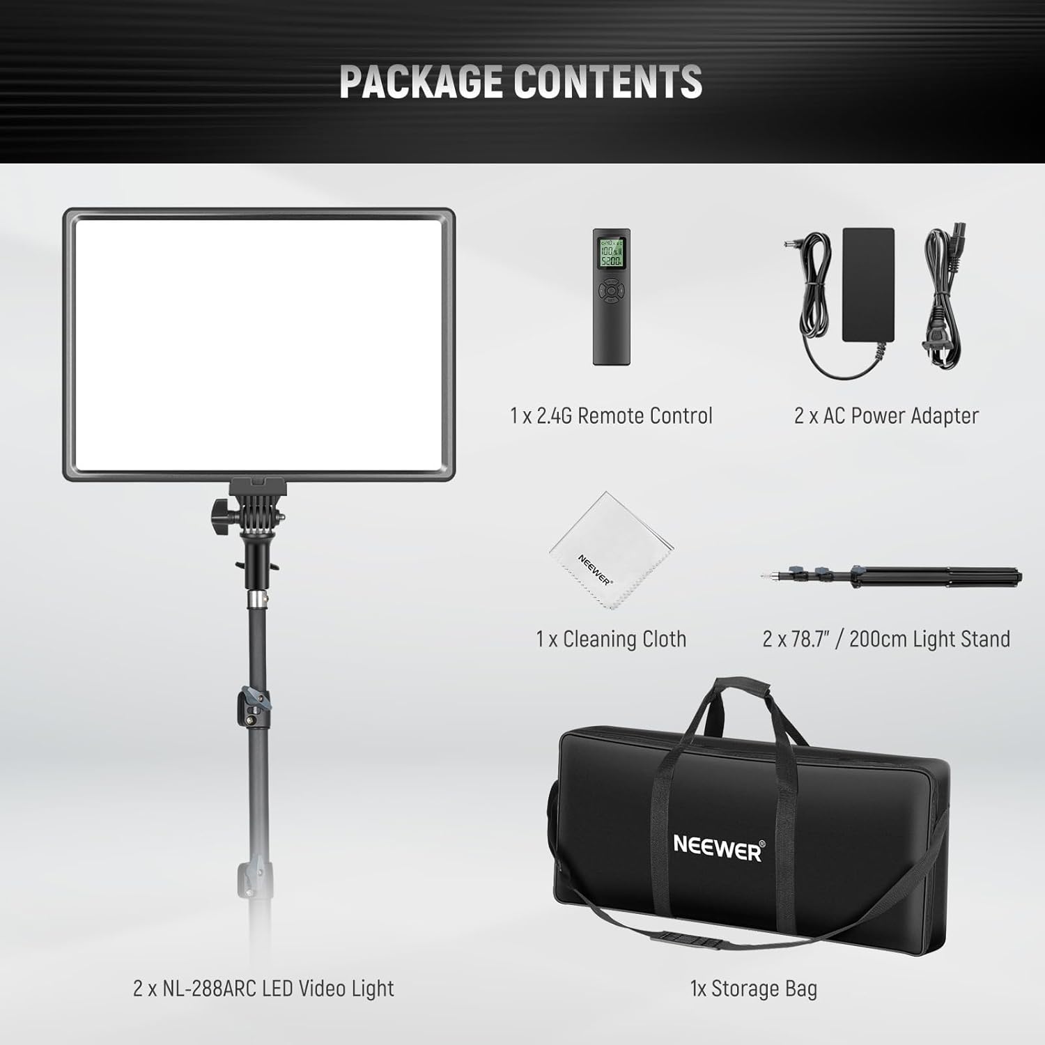 NEEWER 2 Pack NL-288ARC Bi-Color LED Panel Light Stand Kit