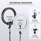 - Cold Shoe & Phone Holder Accessories- This large standing ring light with stand includes a cold shoe ball head adapter for mounting DSLR cameras and a universal phone holder for various smartphones, compatible with iPhone 16 Pro Max 16 Plus 15 Pro 13 Mini 12 11 Samsung Galaxy S24 S23 Ultra Huawei P70 Mate60 Google 9 Pro, etc. (camera and phone NOT included). The 360° rotatable phone holder ensures a seamless switch between landscape and portrait modes for photo, video recording, filming, etc