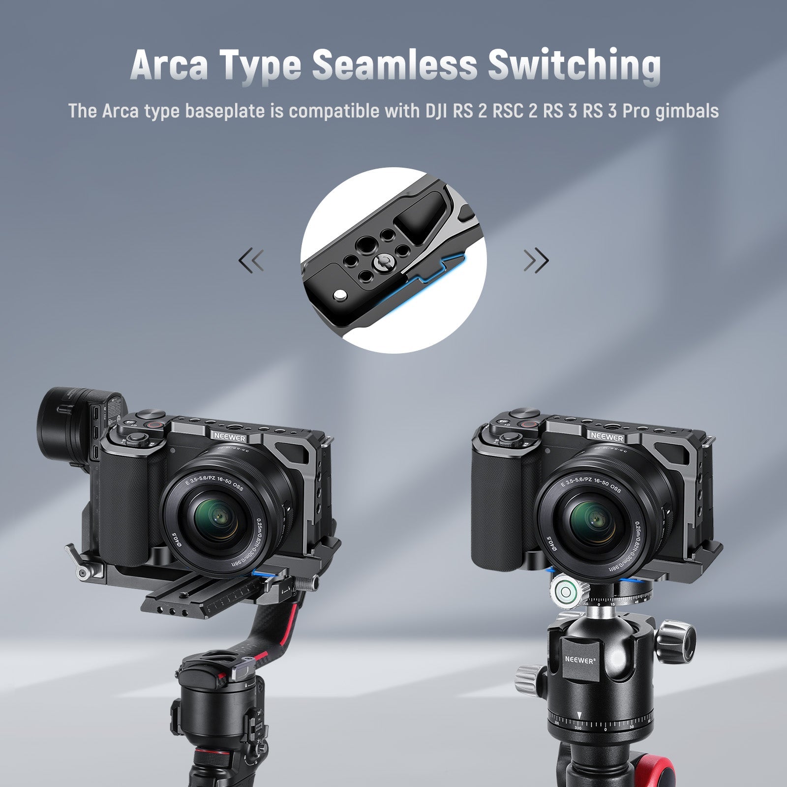 - Arca Type Seamless Switching- The Arca type baseplate is compatible with DJI RS 2 RSC 2 RS 3 Pro gimbals as well as a wide variety of tripod heads—enabling you to seamlessly transfer the camera from a tripod to a handheld stabilizer for different styles of shooting
