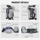 - Multiple Accessory Mounts- 1/4" threads for ST21 Dual Ball Head Adapter, 3/8" threads with locating holes for UA010 Magic Arm and MA004 Monitor Mount, cold shoes for video recording accessories like CM14 PRO vlog microphone and PL81 LED light, NATO rails for CA008 Top Handle and CA017H Side Handle Grip with nato clamps. Compatible with SmallRig top side handles. The 1/4" and 3/8" threads also allow for vertical and horizontal tripod mounting
