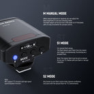 - Manual/S1/S2 Flash Modes- The camera flash supports 3 triggering modes: Manual (M)/S1/S2. M mode lets you adjust flash output precisely from 1/128 to full power (1/1). S1 & S2 are optical slave modes available only in Manual mode for wireless triggering. S1 triggers the flash in sync with the first flash from the master unit, while S2 ignores preflashes and syncs with the second flash for TTL environments, ensuring seamless triggering. Note: The Z120 SE does not support TTL metering itself