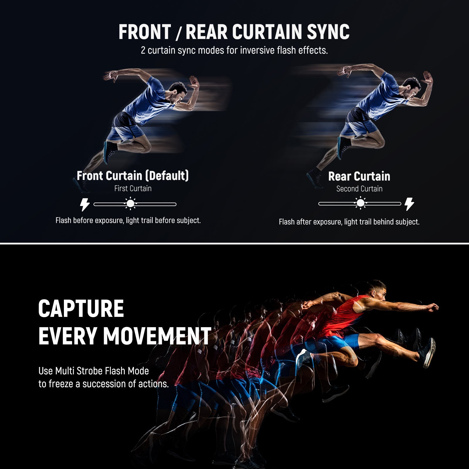 - Sync Method: High speed sync (HSS, up to 1/8000s), front curtain, rear curtain