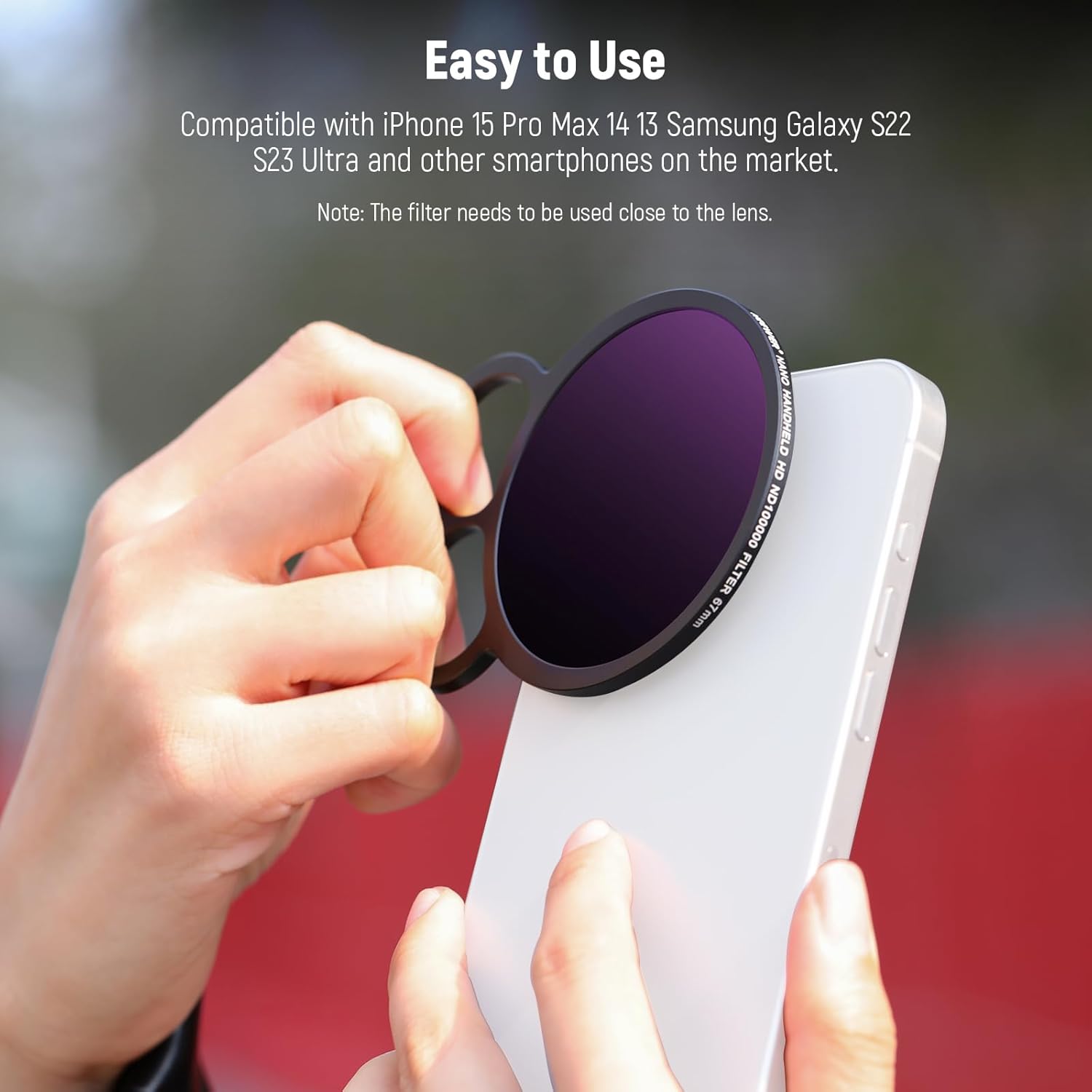 - Easy to Use- This neutral density filter is designed with finger grips, making it easy to hold in front of the phone lens with exceptional maneuverability