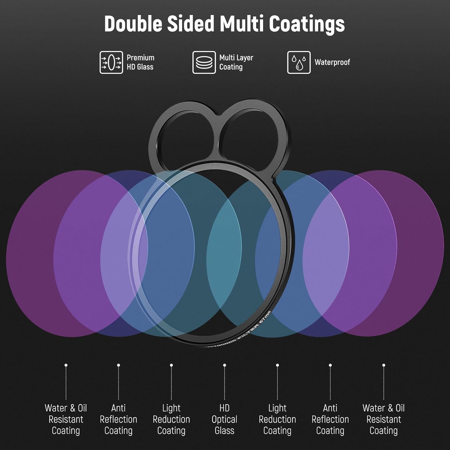 - Multi Coated HD Optical Glass- Made of advanced HD optical glass, this 67mm neutral density filter ensures true colors and manages contrast while maintaining image clarity. The multiple layers of anti reflective coating on both sides further enhance the quality