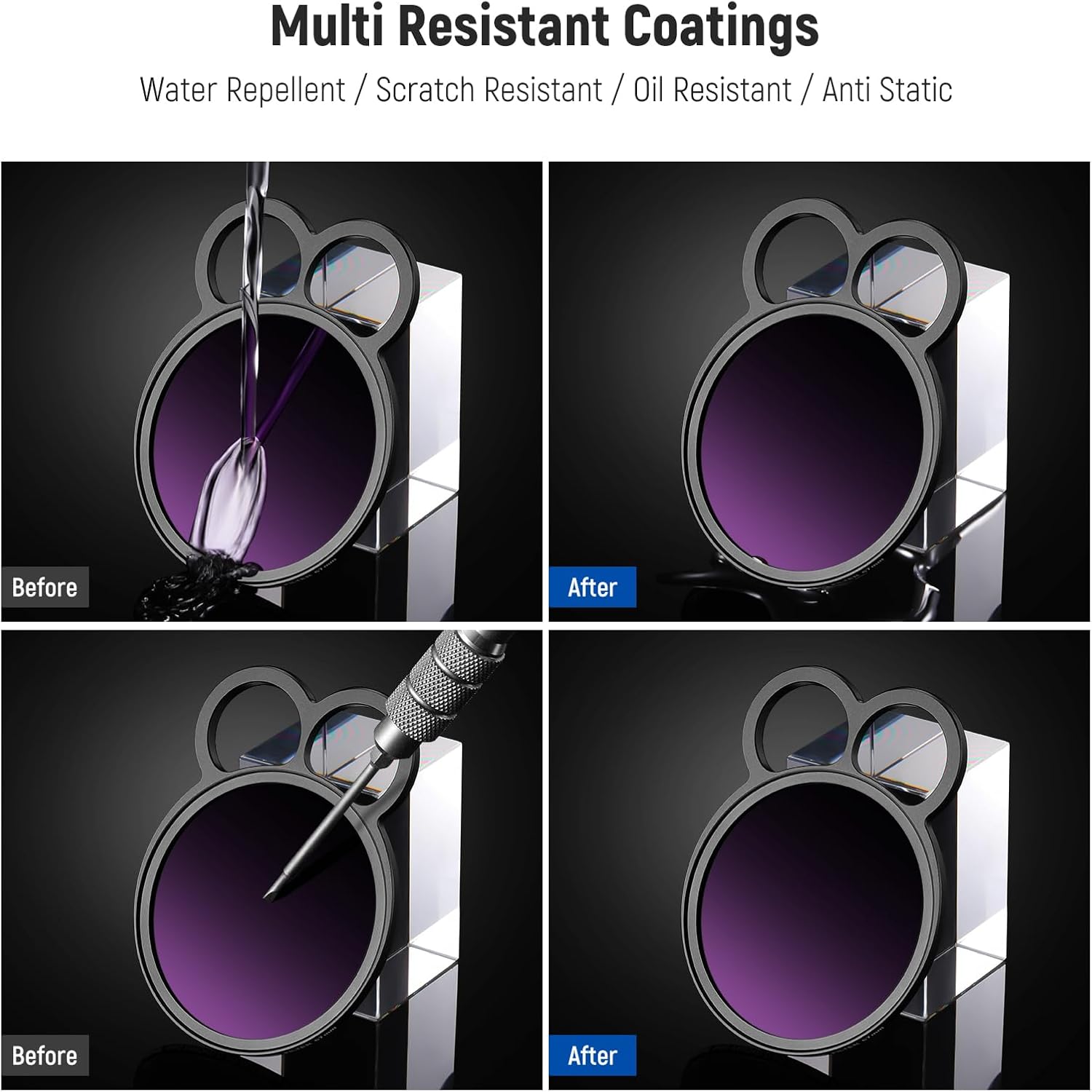 - 16.5 Stops of Light Reduction- This ultra dark fixed ND filter provides 16.5 stops of light reduction to block excessive amounts of light. It delivers clear photos without overexposure or color cast