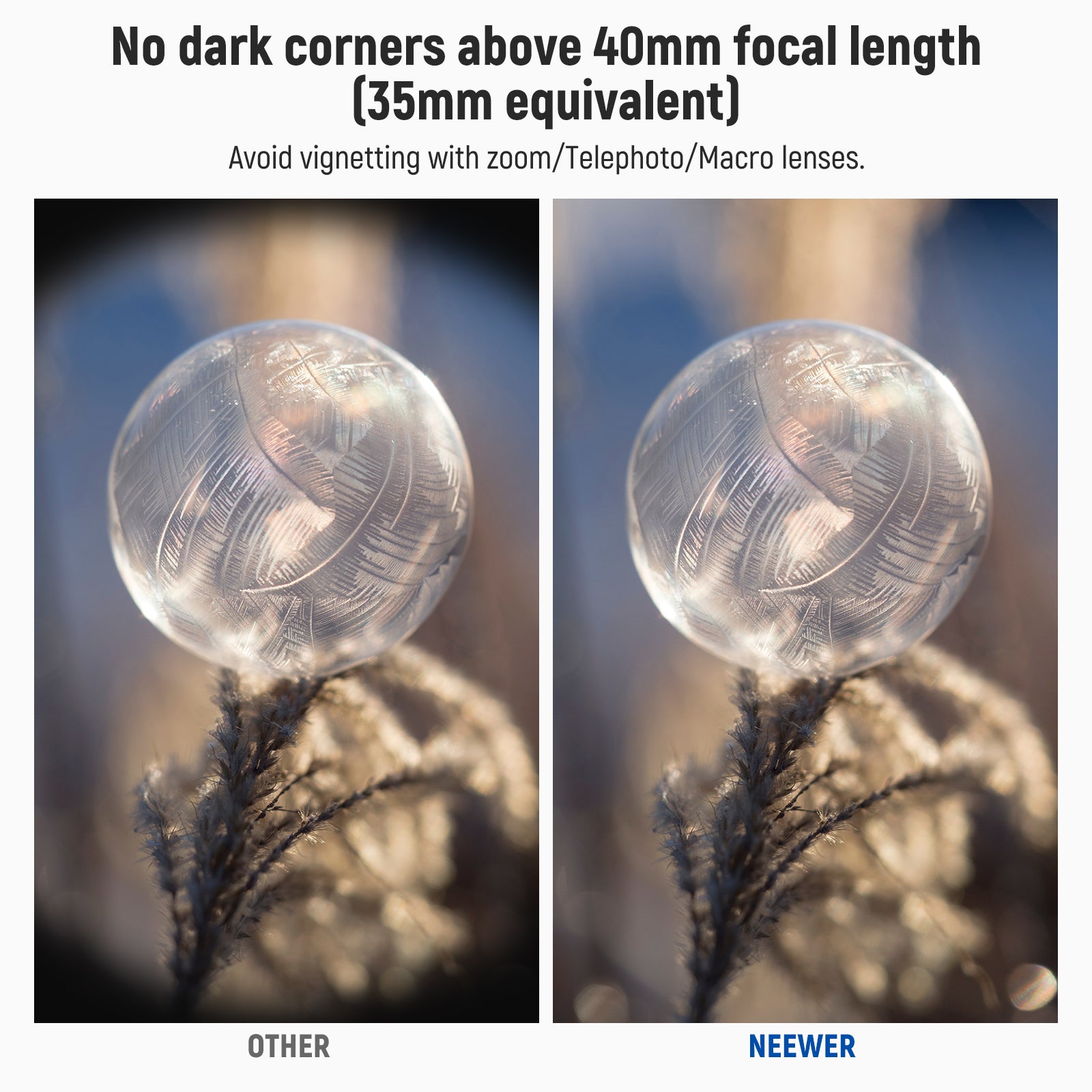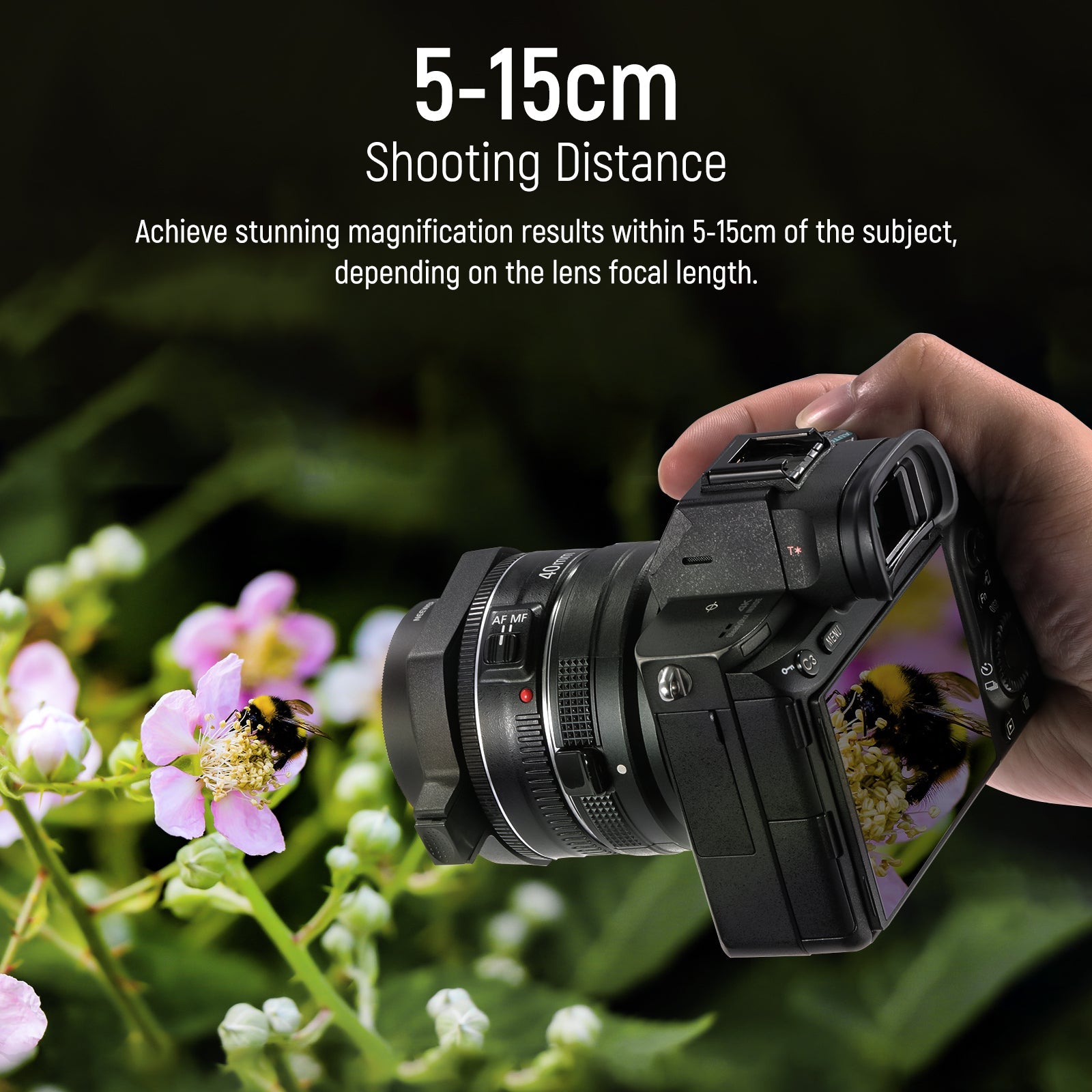 - Vignette Free Magnification & 49mm Filter Thread- Get closer to the subject at a perfect 5 to 15cm shooting distance and a 40 to 200mm focal range, to highlight fine details with greater clarity in a naturally blurred background, without vignetting or chromatic aberrations typically for macro lenses. The front thread fits ND, VND, CPL, UV and effect filters (not included), is compatible with K&F compatible with NISI compatible TIFFEN and NEEWER 49mm filters