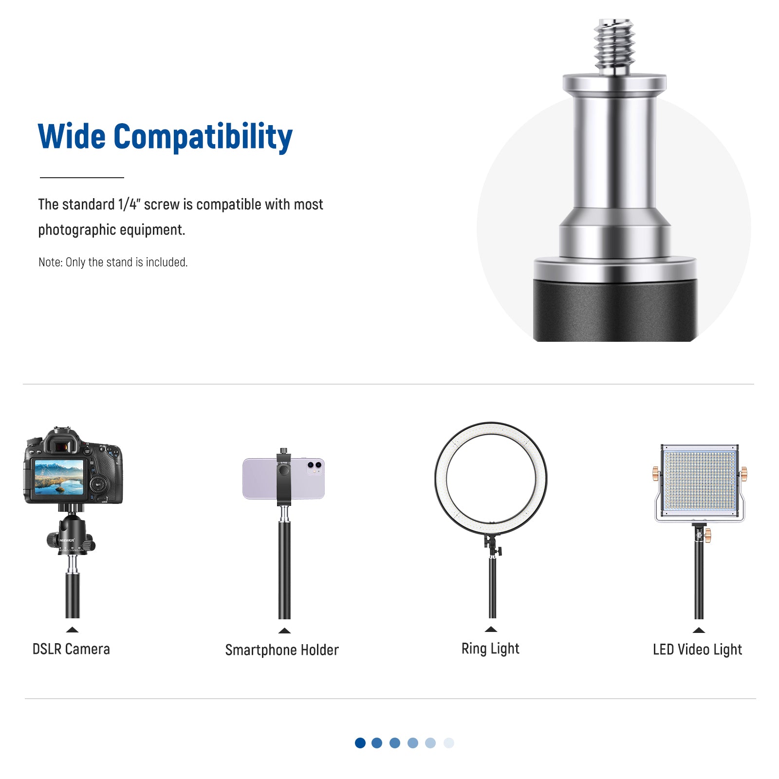 - 1/4” Ball Head & Hot Shoe Adapter- This desktop C clamp stand with a top 1/4” screw and the mini ball head and detachable 1/4” hot shoe adapter allow you to easily install a microphone, LED video light, ring light, phone holder, field monitor, DSLR camera, camcorder, digital camera, or a wireless flash trigger on your desk.