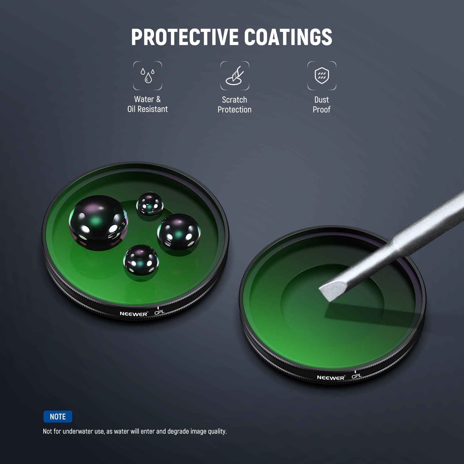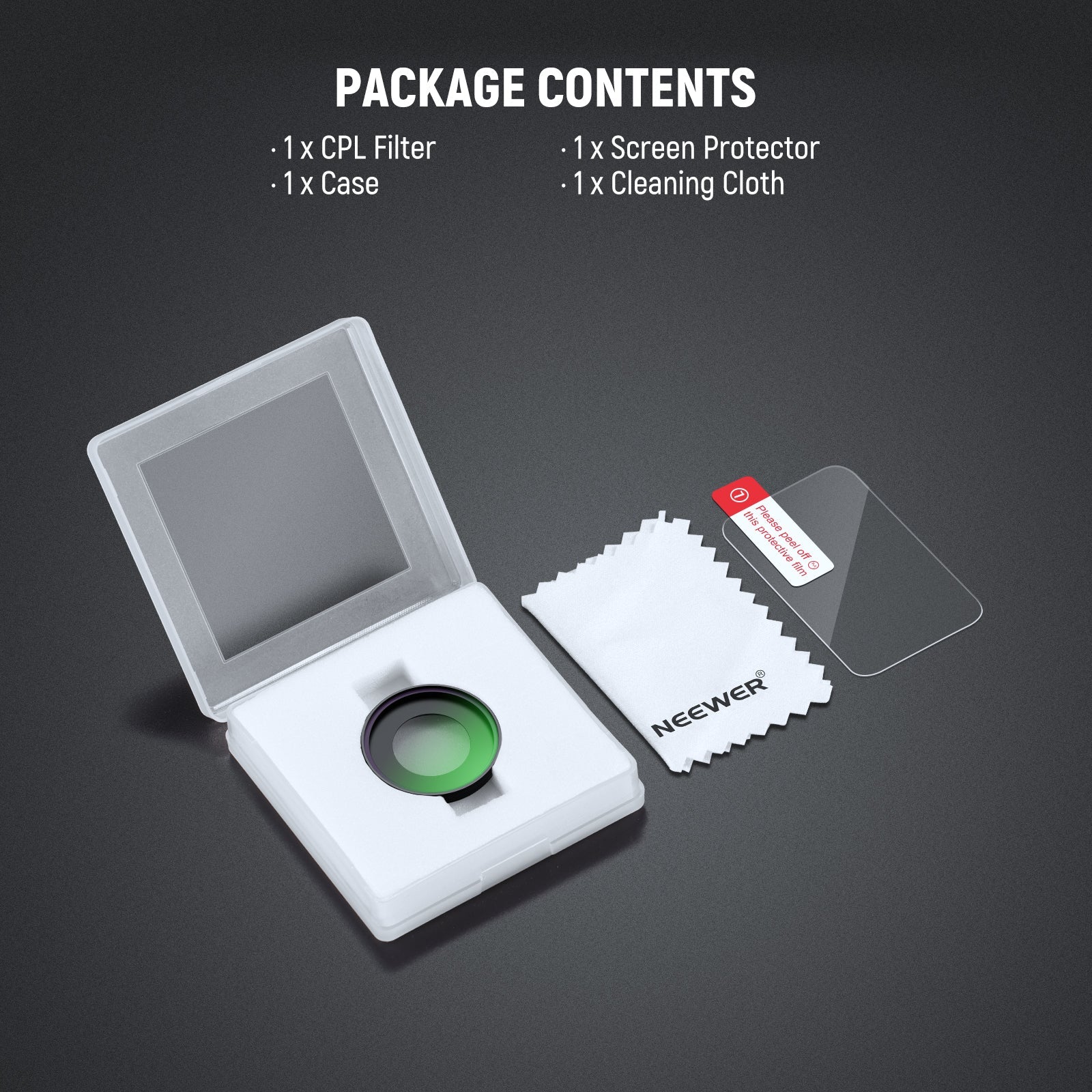 - Minimal Glare & Rich Color- Adjustable CPL (circular polarizing) filter minimizes reflections on glass, water, and other nonmetallic surfaces while improving contrast and saturation. Rotate the frame to adjust polarization effects