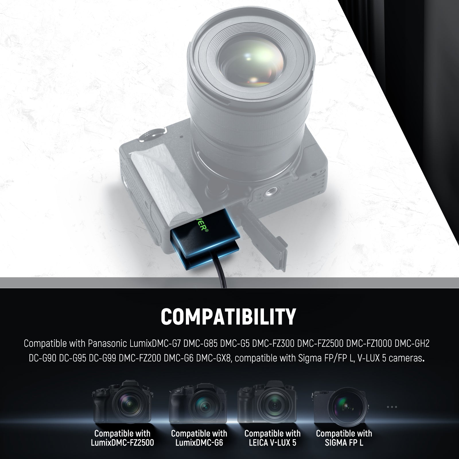 - Compatible Models- This power adapter coupler kit is compatible with Panasonic LumixDMC-G7 DMC-G85 DMC-G5 DMC-FZ300 DMC-FZ2500 DMC-FZ1000 DMC-GH2 DC-G90 DC-G95 DC-G99 DMC-FZ200 DMC-G6 DMC-GX8, compatible with Sigma FP/FP L, V-LUX 5 cameras