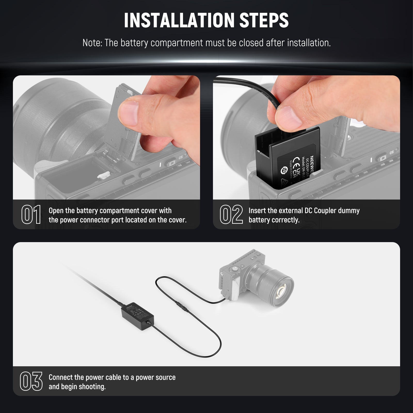NEEWER DMW-BLC12 Dummy Battery Coupler Kit