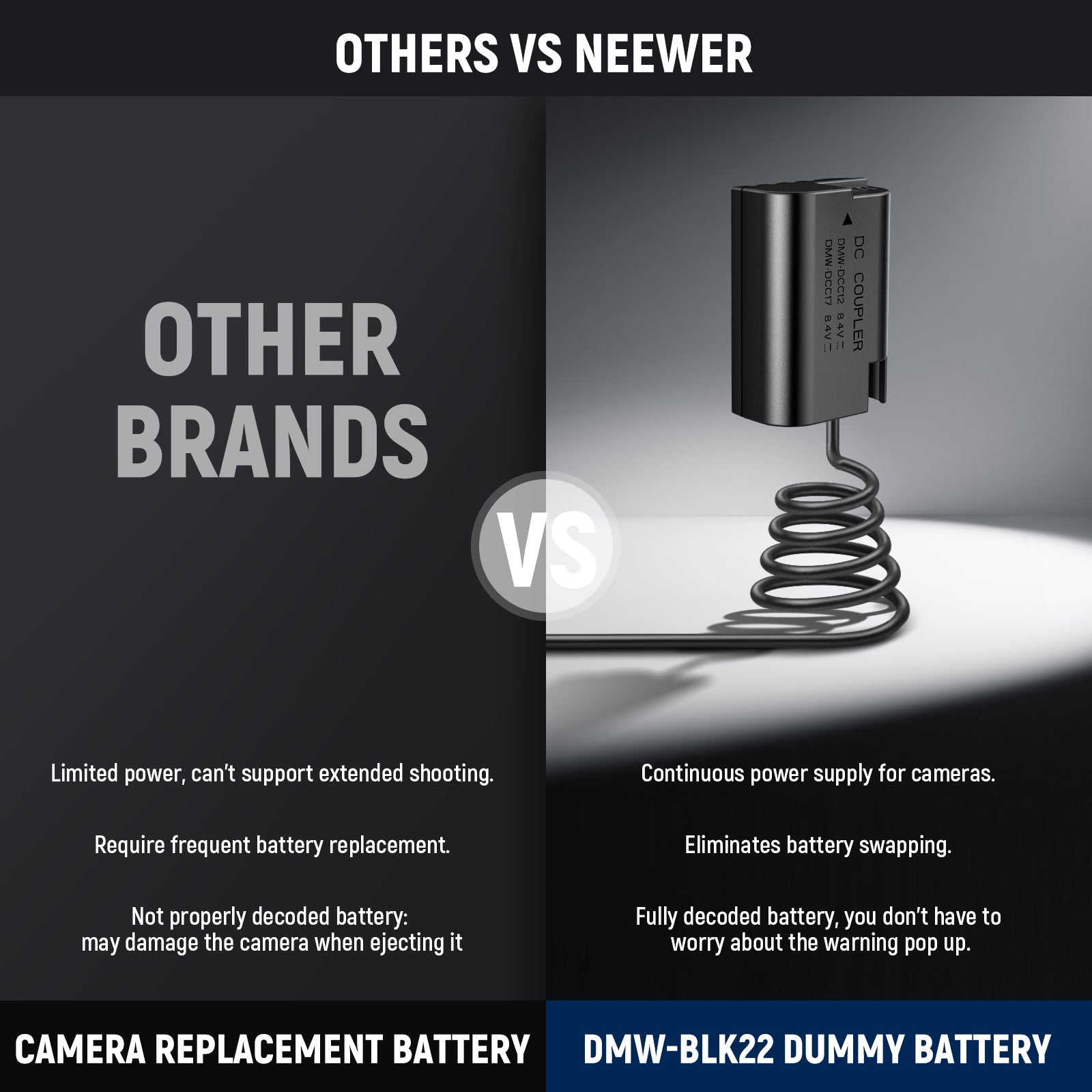 NEEWER DMW-BLK22 AC Power Supply Adapter and DC Coupler Dummy Battery Kit