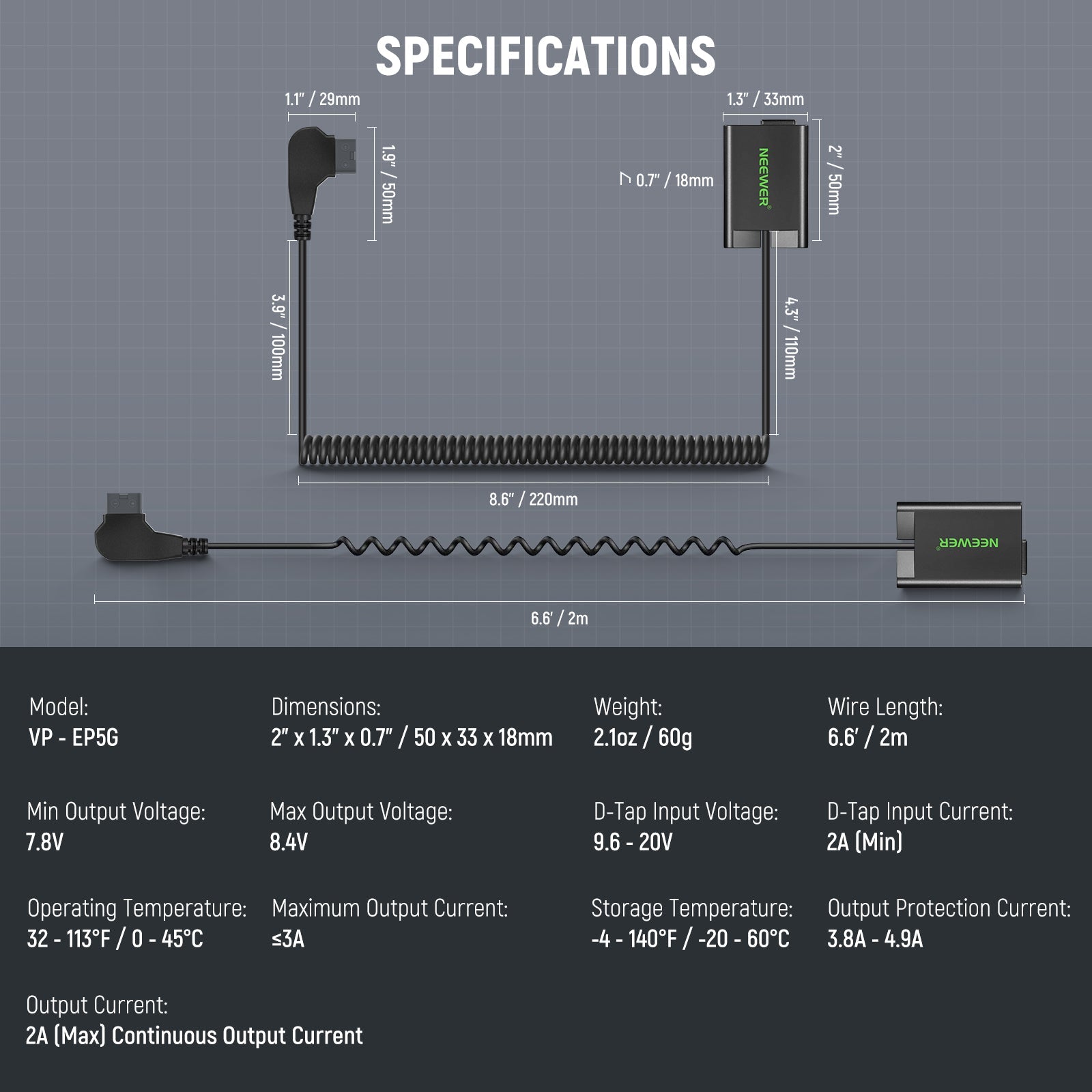 NEEWER VP-EP5G EN-EL25 to D Tap Dummy Battery