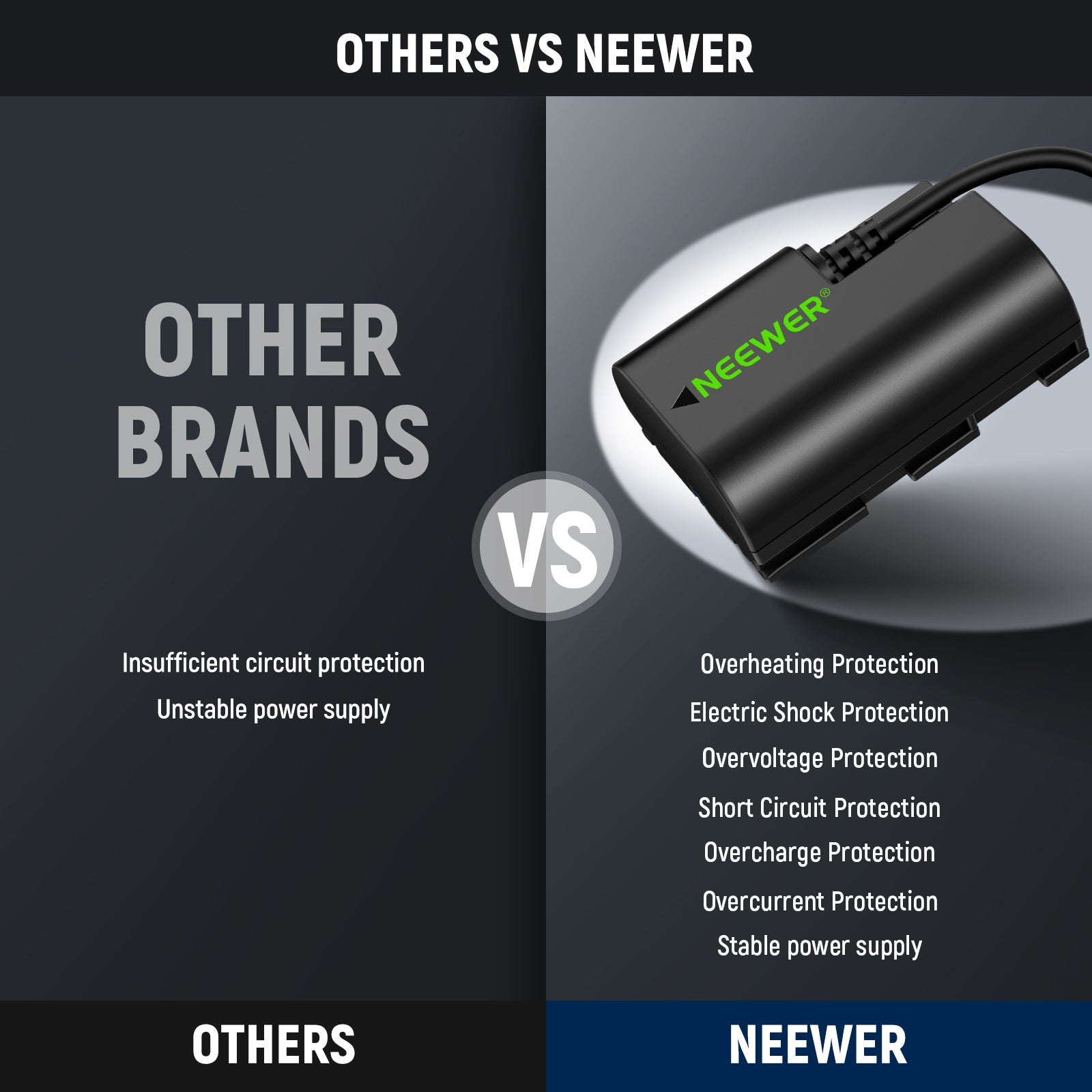 - Fully Decoded with Integrated Protection System- The fully decoded dummy battery makes sure that there will be no pop up alerts interrupting your creation sessions. An advanced protection system can effectively prevent overcharging, short circuits, overheating, overcurrent, overvoltage, and other potential hazards.