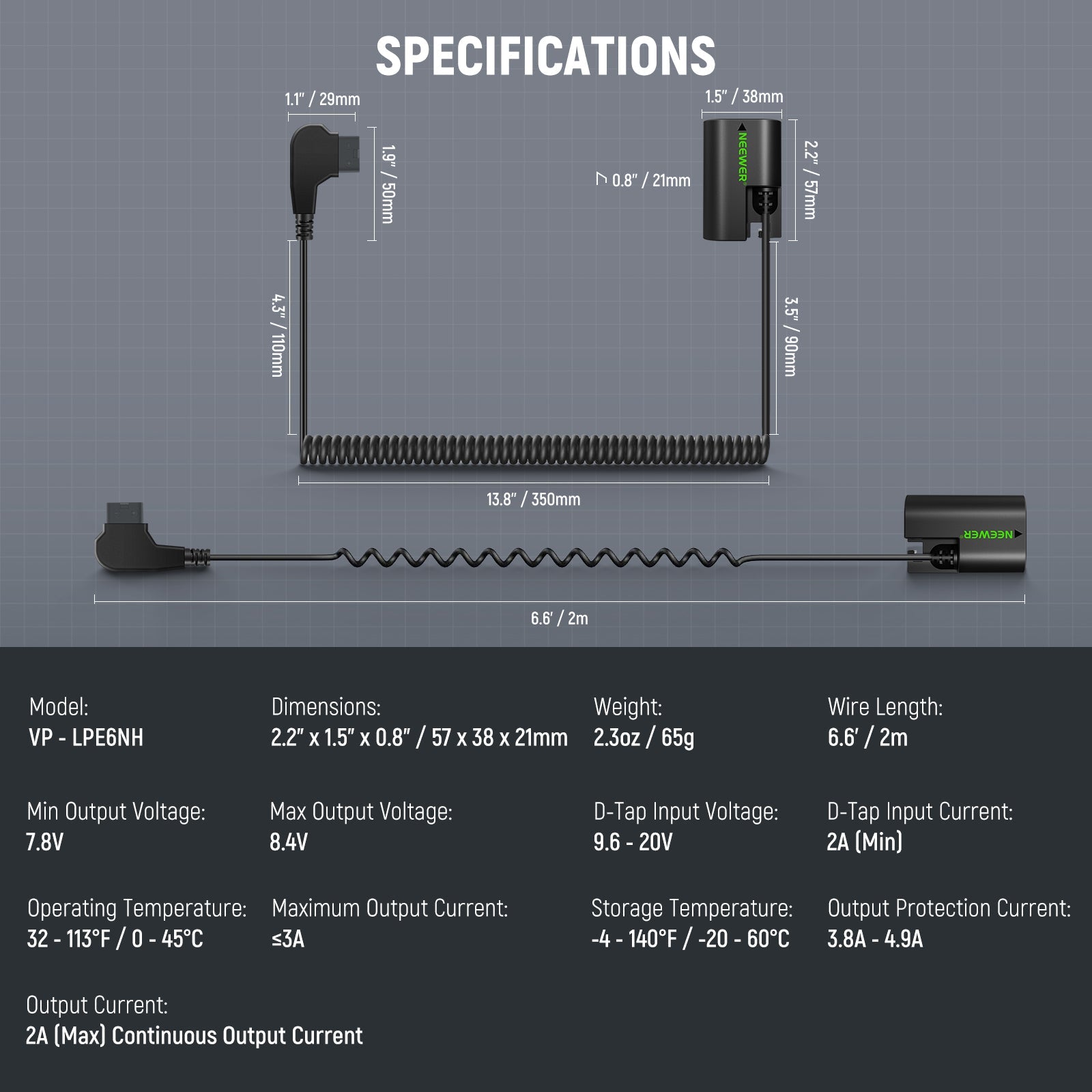 NEEWER VP-LPE6NH D Tap to LP-E6NH Dummy Battery