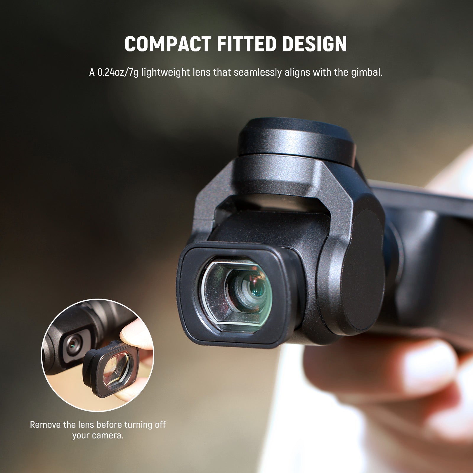 • Fast & Secure Magnetic Attachment- The magnetic lens frame attaches to your camera quickly and securely. Its matte black finish minimizes lens glare and the slim structure ensures seamless gimbal calibration and storage. Note: Remove the lens before powering the gimbal off