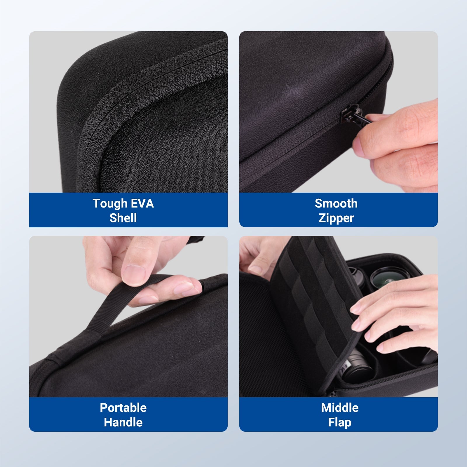 - Versatile Storage Case- Simultaneously stores multiple action cameras and keep them safe and organized. Compatible with GoPro Hero 13 Go Pro 12 11 Black DJI Osmo 360 Action 6 5 Pro 4 Pocket 3 and NEEWER 17mm phones lens accessories