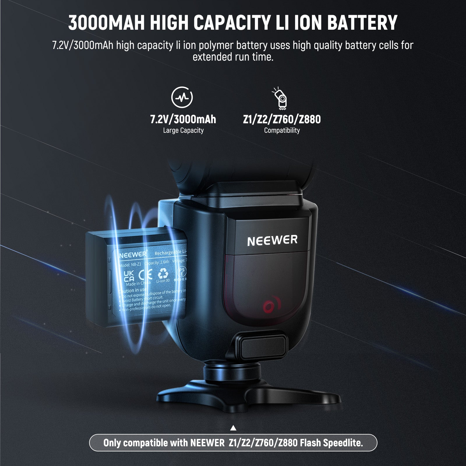 NEEWER NB-Z1 PRO 7.2V/3000mAh Replacement Li ion Battery for Flash Speedlite
