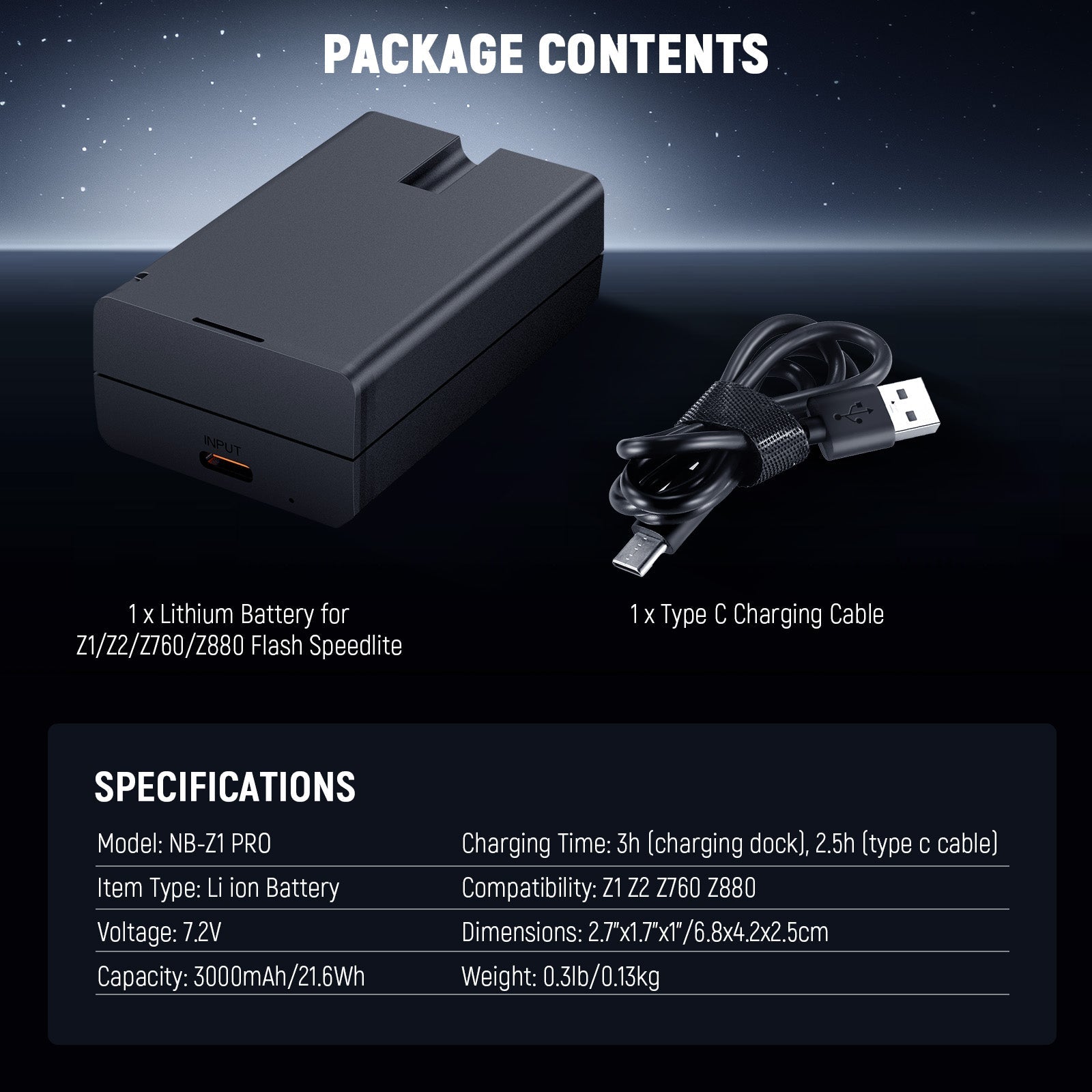 - 1 x Lithium Battery for Z1/Z2/Z760/Z880 Flash Speedlite