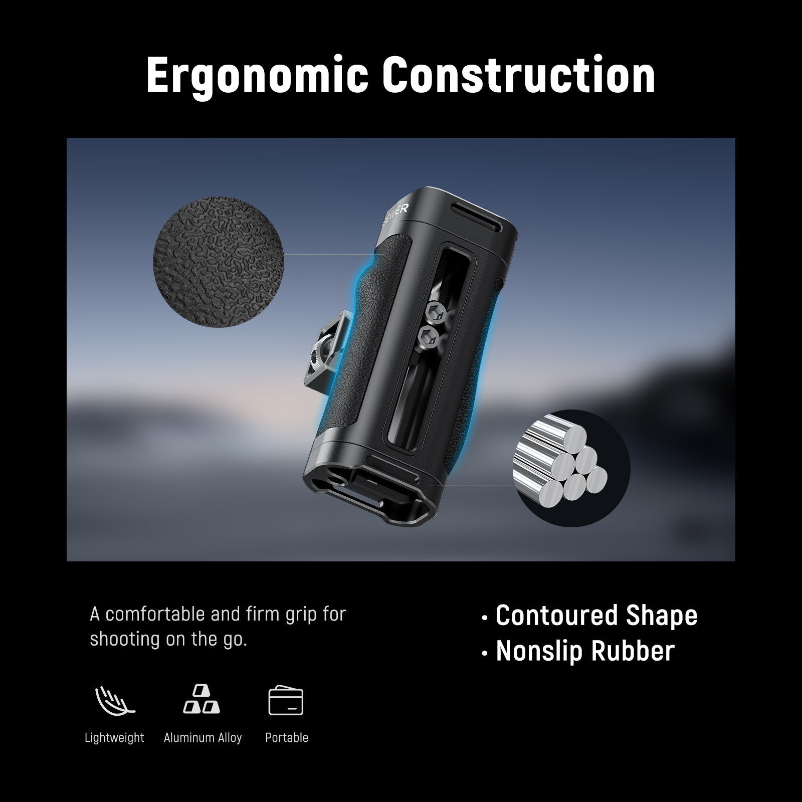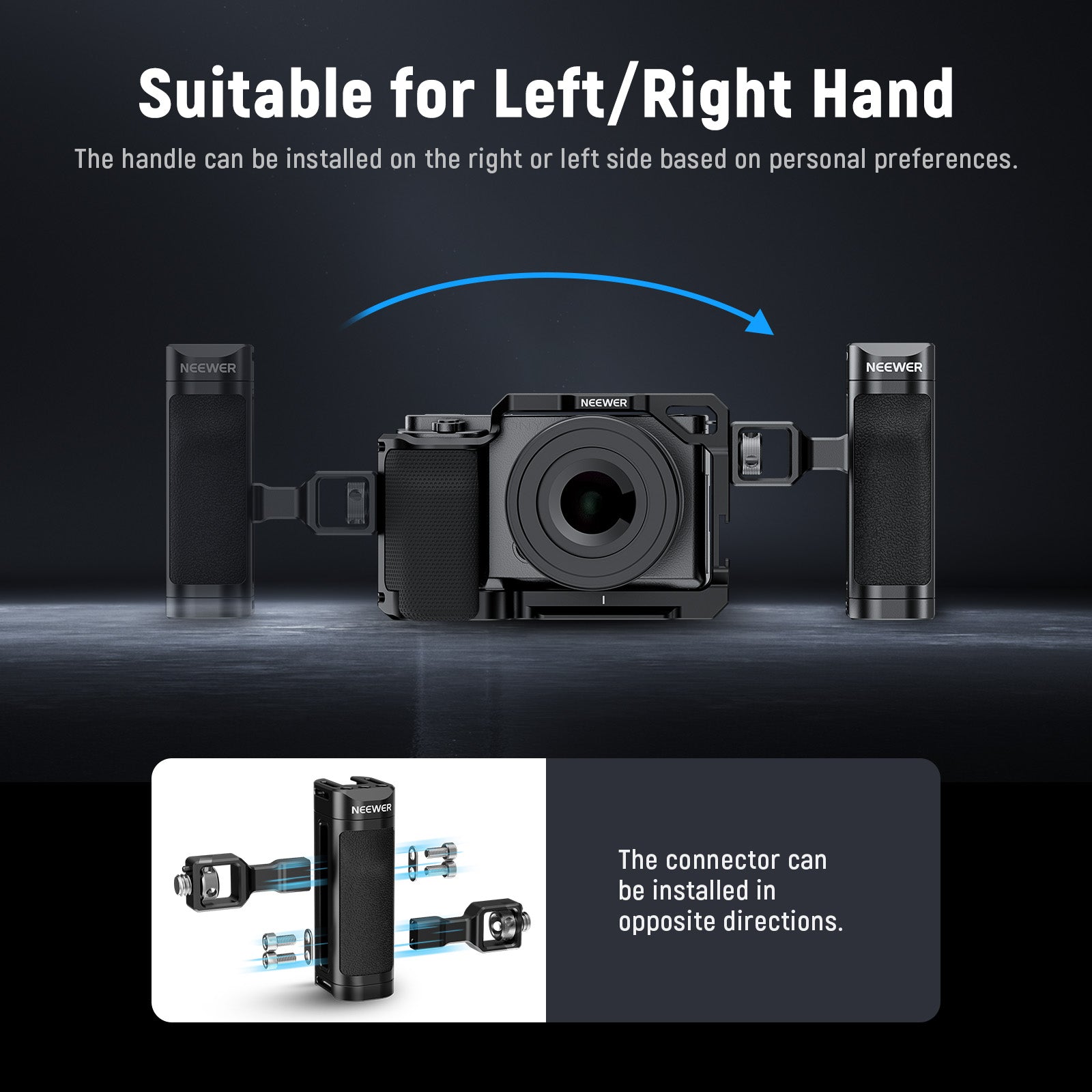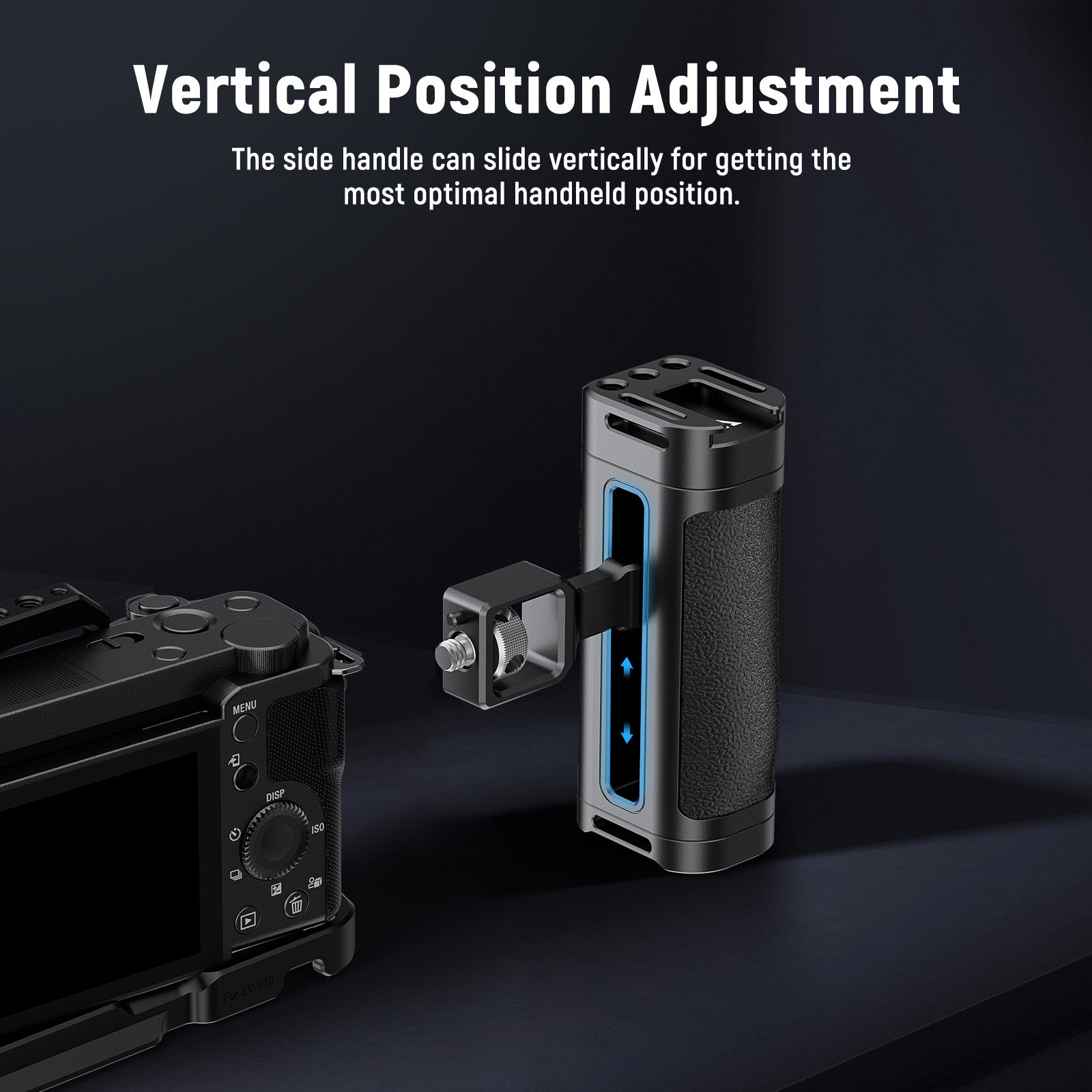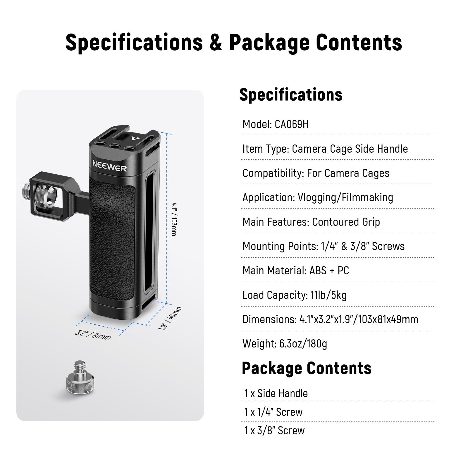 - Contoured Side Handle Grip- Suitable for most camera cages, this side handle handgrip lets you stabilize the camera for recording smooth and sharp videos. The nonslip silicone grip with contours ensures a comfortable and firm grasp