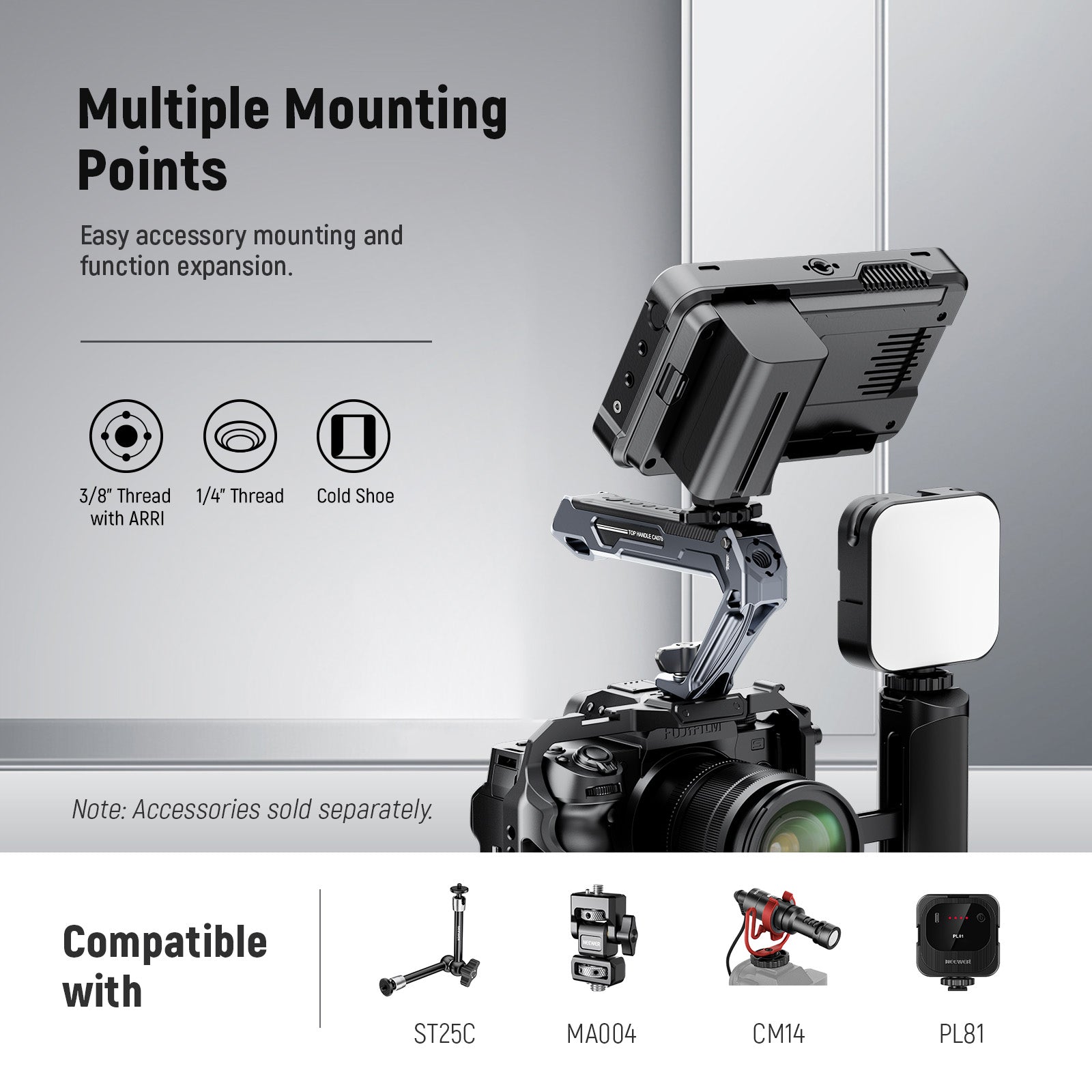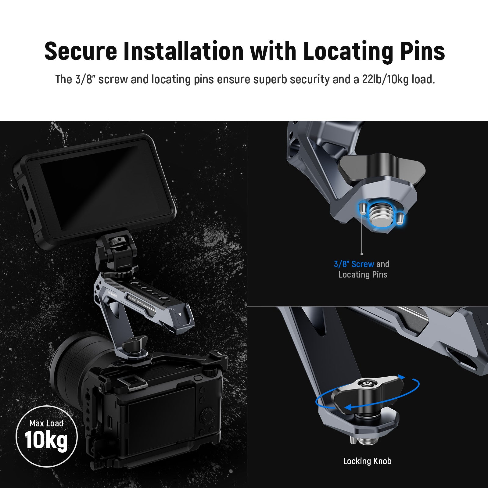 - Secure Installation with Locating Pins- This camera top handle grip can mount on a camera cage through the 3/8" screw and locating pins for superb security and offer a 22lb/10kg maximum load capacity. Also compatible with SmallRig camera cage stabilizers