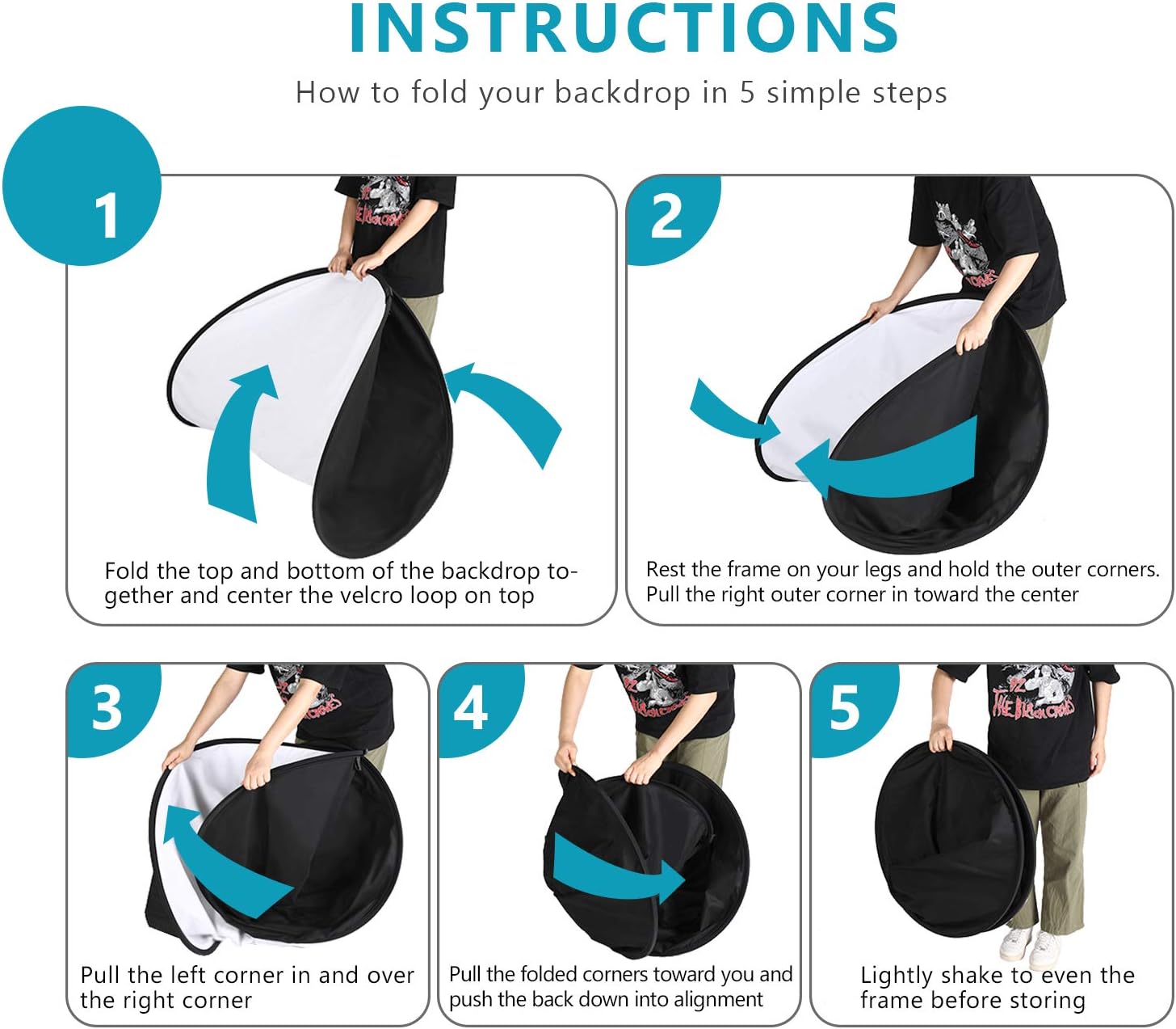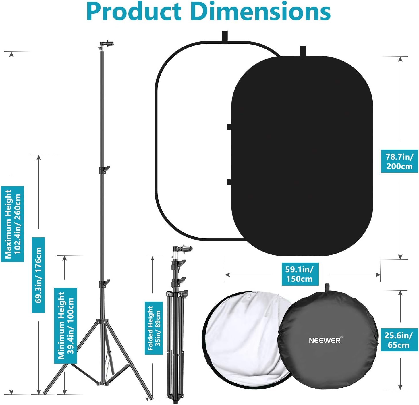 - Backdrop Panel Folded Dimensions: 2.1x2.1x0.1 feet/ 65x65x3 centimeters