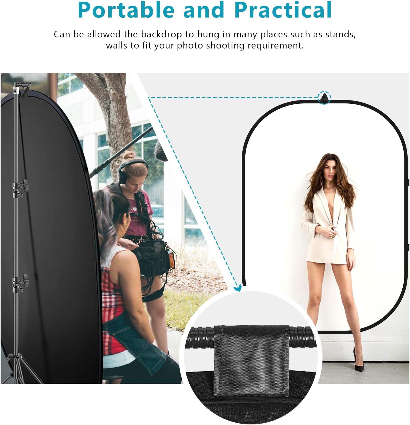 - This 5"x 7"/150x200cm Black+White 2-in-1 Collapsible Background Panel is a perfect choice for outdoor and studio shooting.