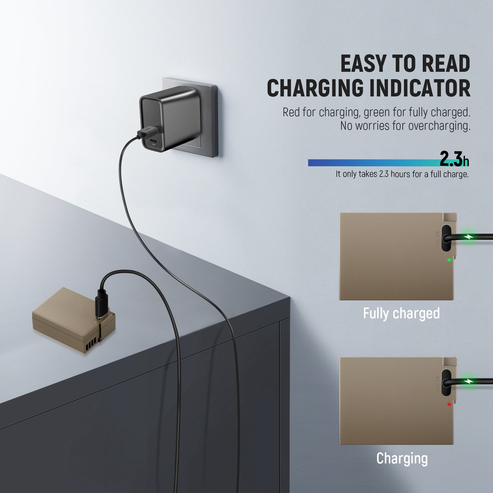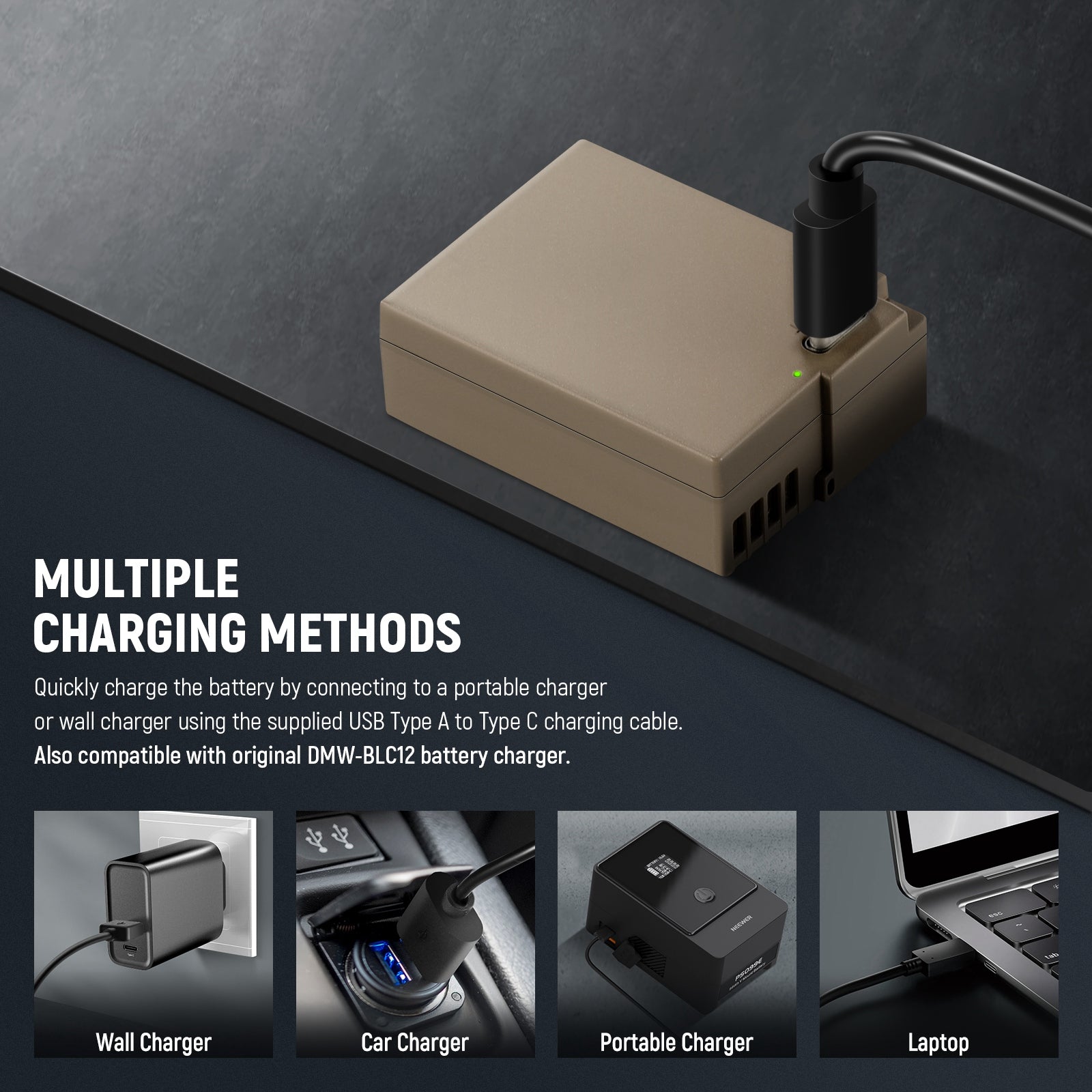 - USB Type C Charging Port- Built with a USB Type C charging port, this DMW-BLC12 battery does not need an external battery charger. All you need for charging is a USB Type C cable (included) and a 5V USB power adapter (not included)