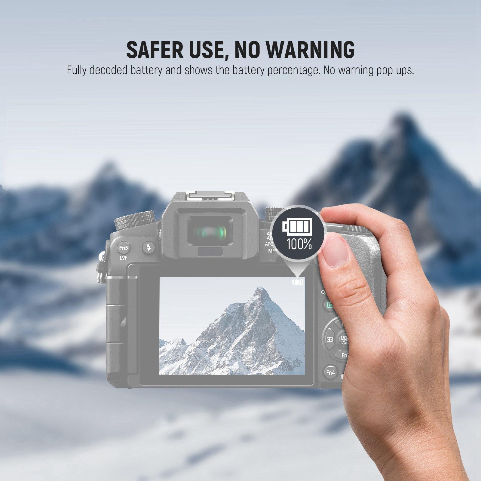 - Replacement Battery for DMW-BLC12- Fully compatible with Lumix DMC-G7 DMC-G85 DMC-G5 DMC-FZ300 DMC-FZ2500 DMC-FZ1000 DMC-GH2 DMC-FZ200 DMC-G6 DMC-GX8 DC-G90 Sigma FP FP L V-LUX 5, this decoded battery provides a consistent and stable battery level. The battery percentage will be shown on the camera screen. Note: Fully discharge the battery before charging it for the first time