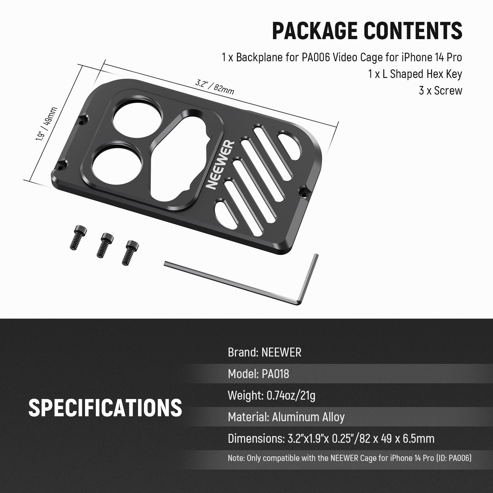 NEEWER PA018 Lens Backplate For iPhone 14 Pro Phone Cage