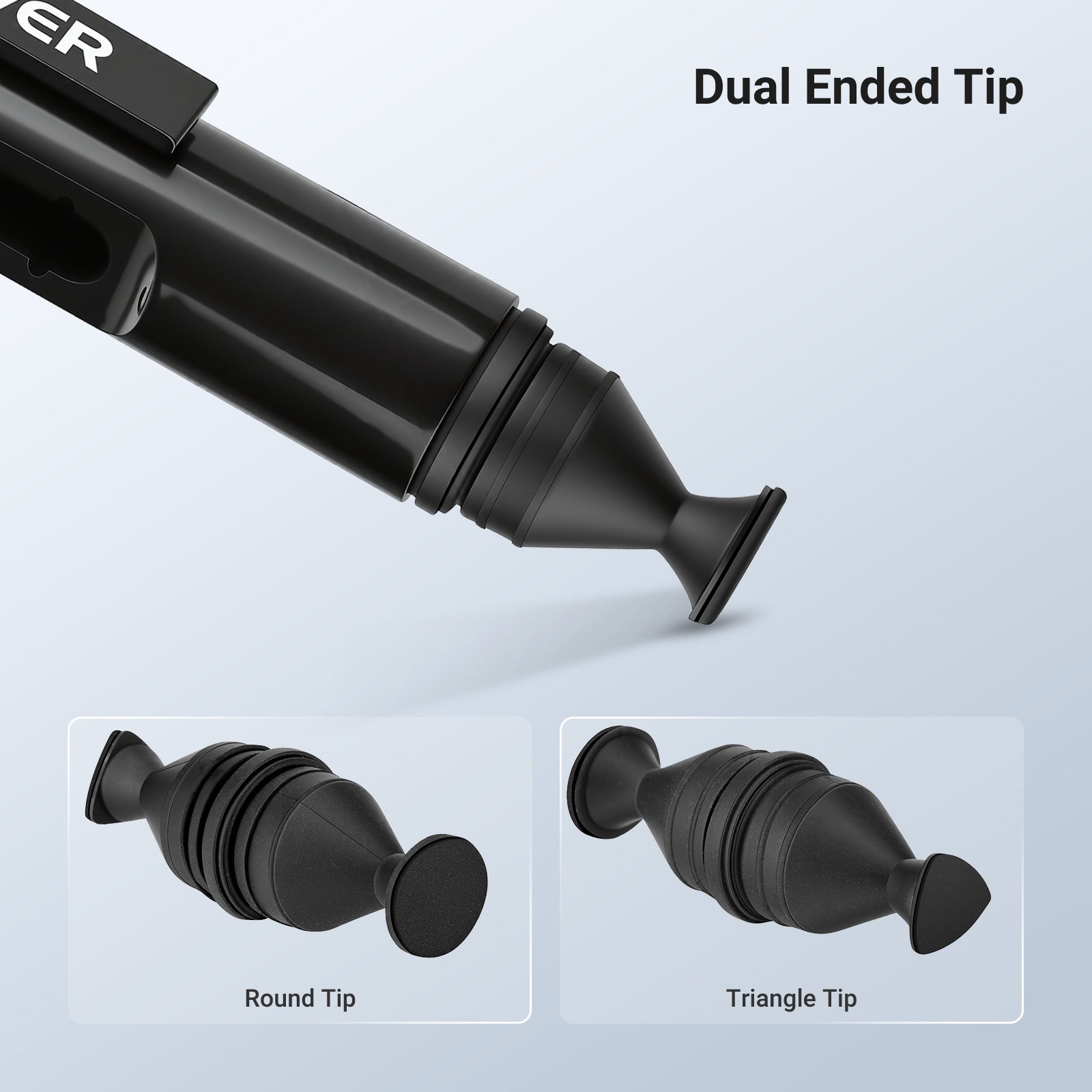 - 2 In 1 Lens Brush Pen- The lens cleaning pen features two ends: a retractable soft brush that sweeps away dust, and a felt tip that absorbs oil, fingerprints, and smudges. Ideal for cleaning lenses, camera bodies, keyboards, and other devices