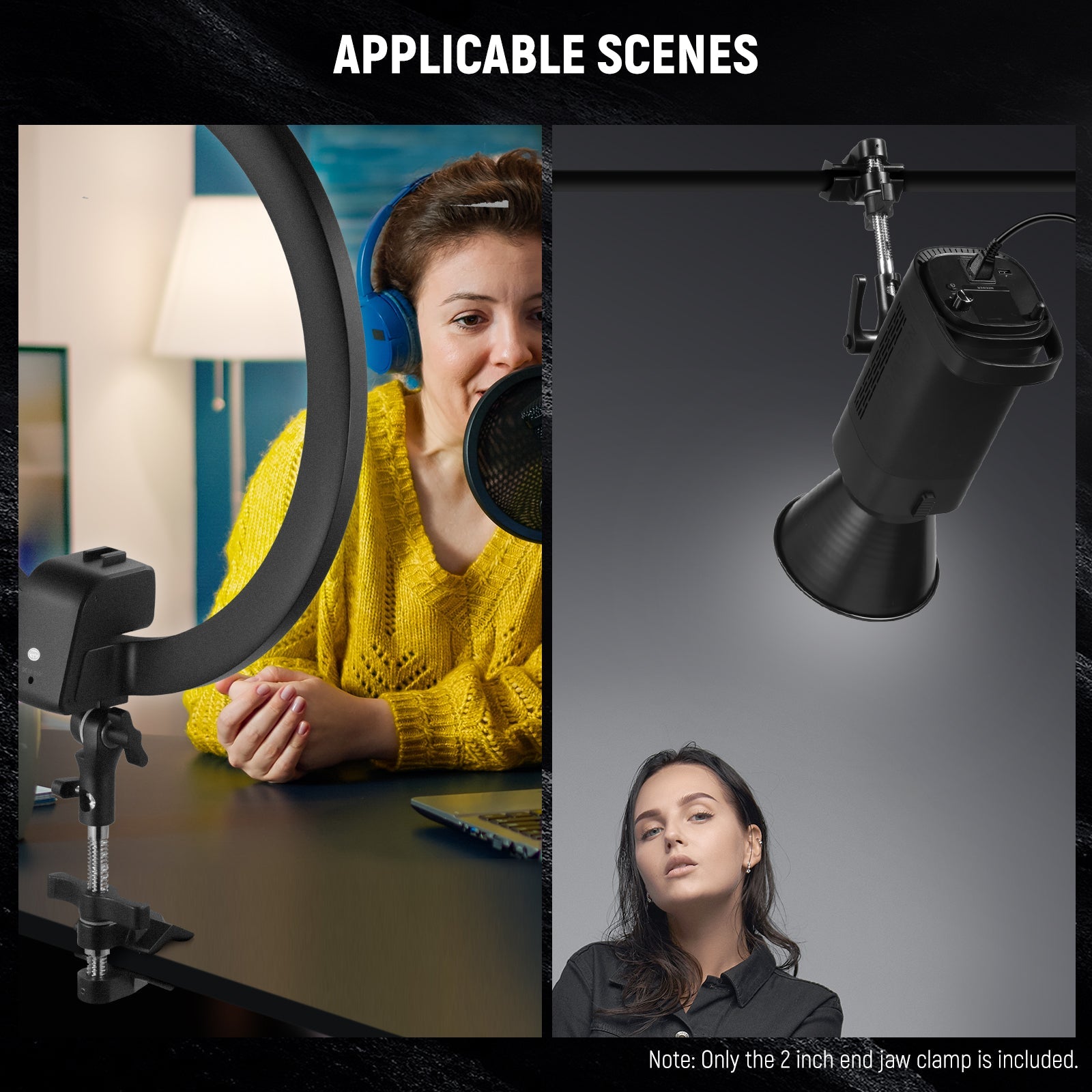 - Sturdy & Durable- The robust stainless steel shaft and aluminum alloy jaw is built to withstand heavy-duty use and can securely support heavier lights or other accessories
