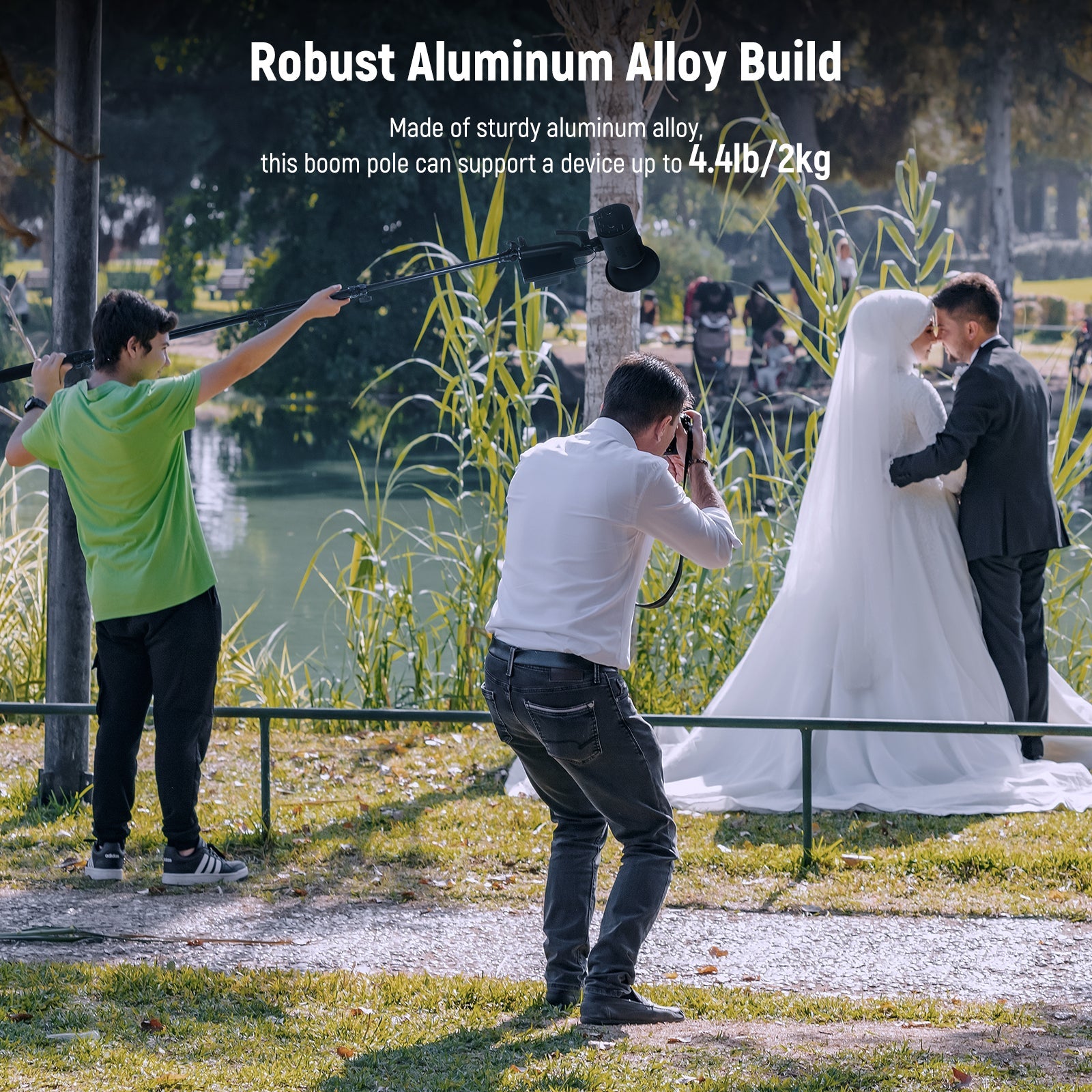 • Robust Aluminum Alloy Build- Made of sturdy aluminum alloy, this boom pole can support a device up to 4.4lb/2kg, such as microphones, scrims, reflectors, LED video lights, or studio monolight flashes with softbox, beauty dish, snoot, and other light modifiers