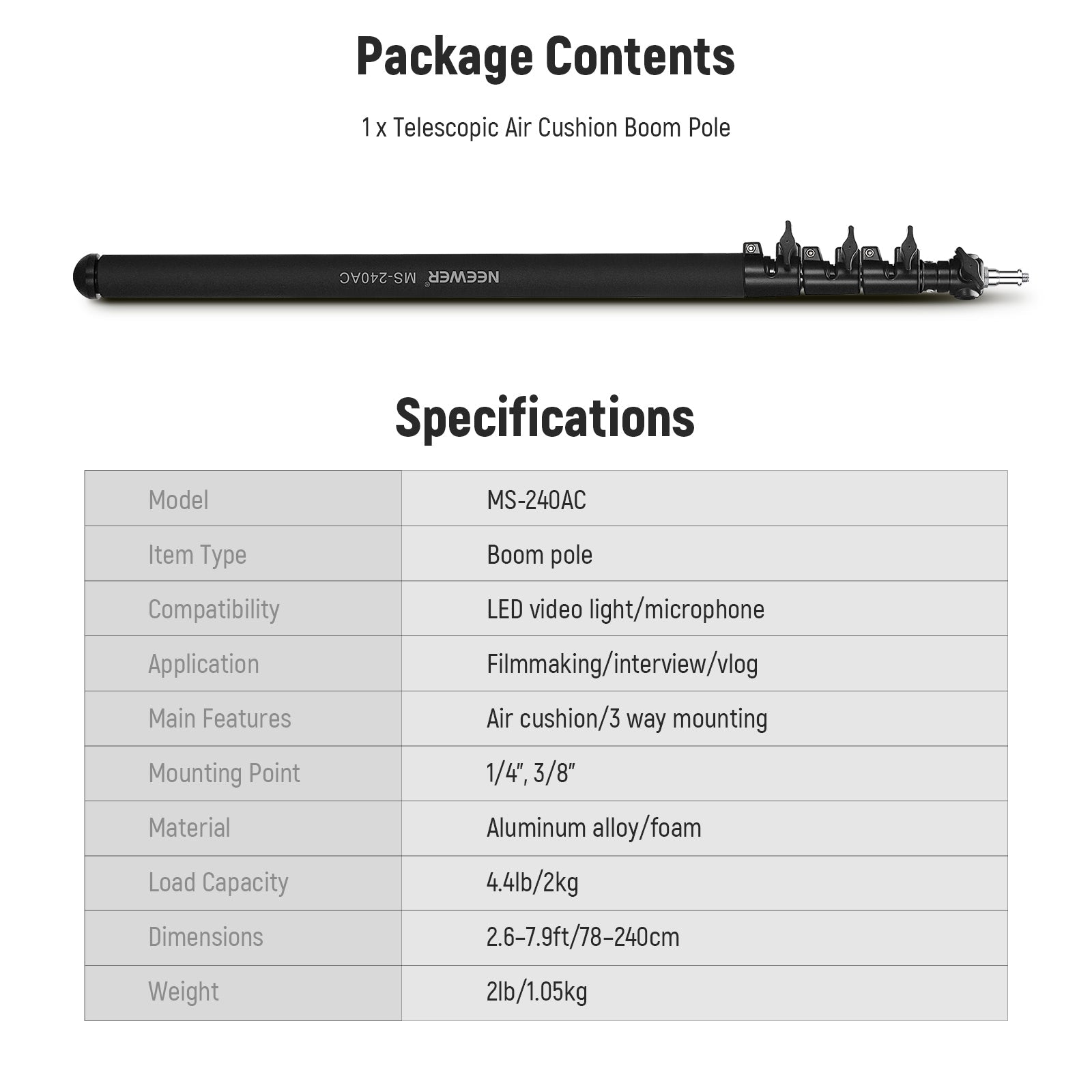 NEEWER MS240AC 7.9ft/240cm Telescopic Air Cushion Boom Pole